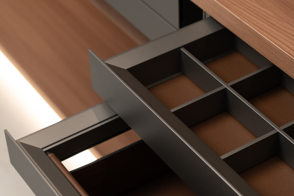 Materials are the language of our brand. We carefully select Italian-imported stone, refined wood veneers, premium European full-grain leather, high-transparency glass, and finely crafted metals.