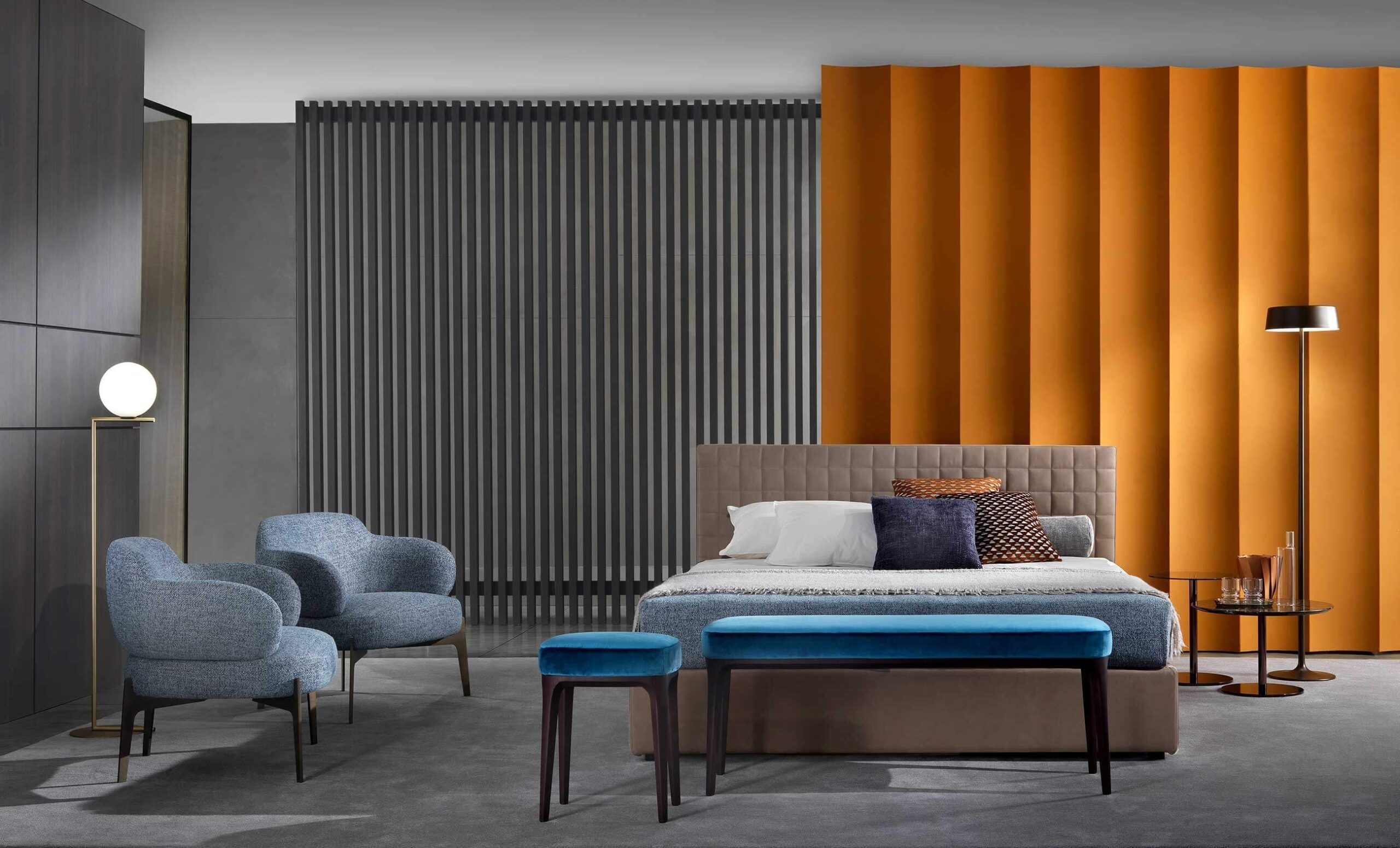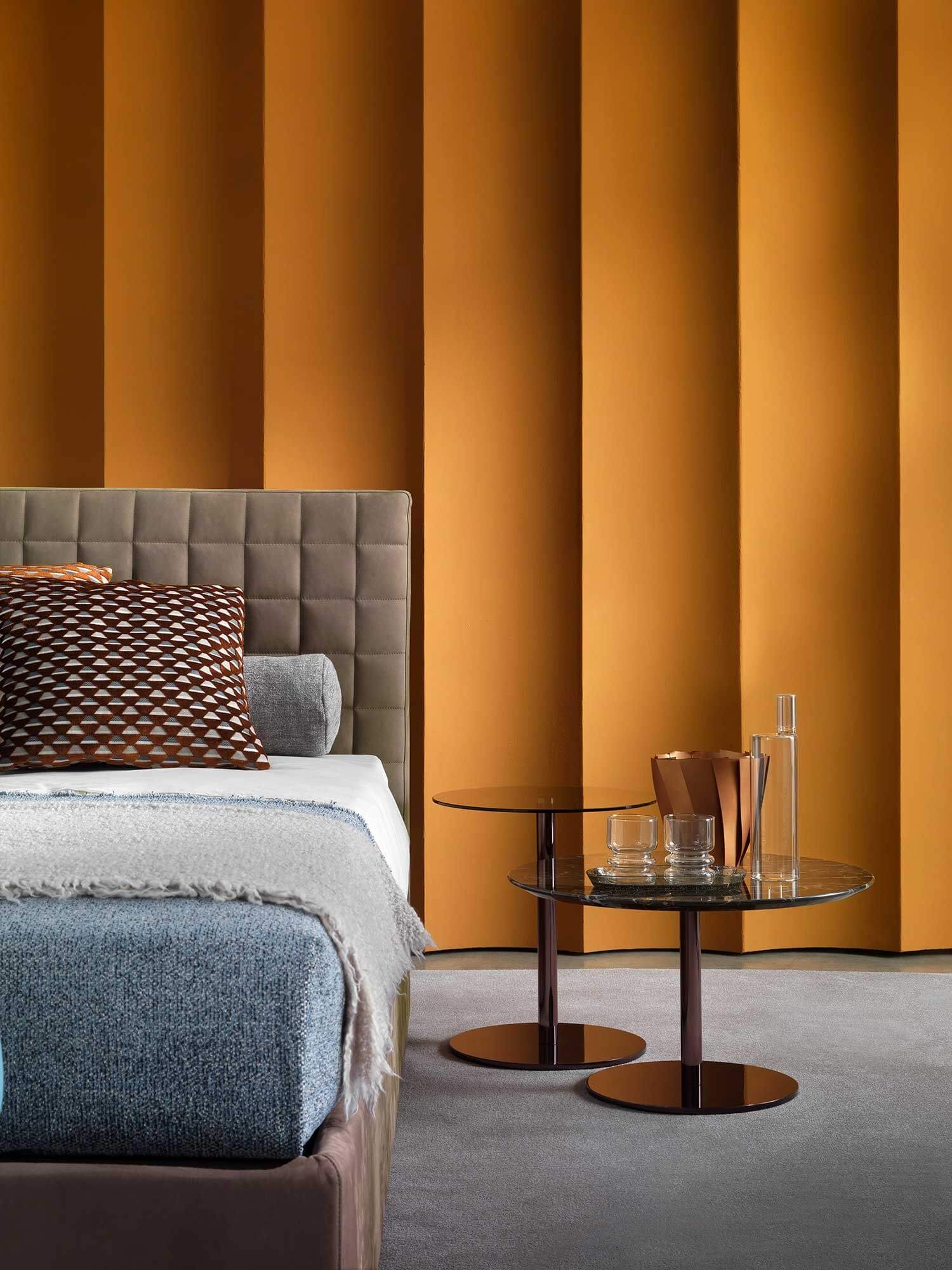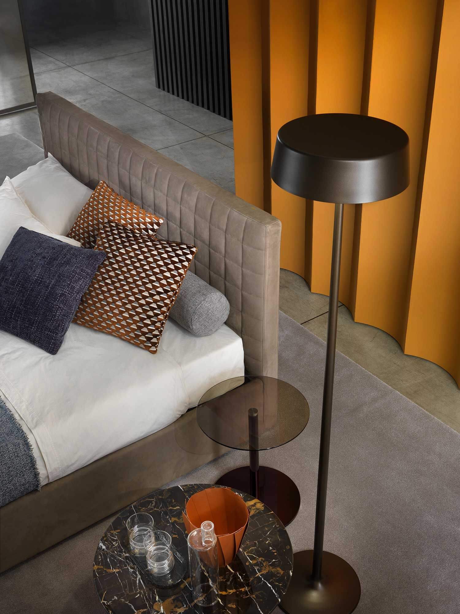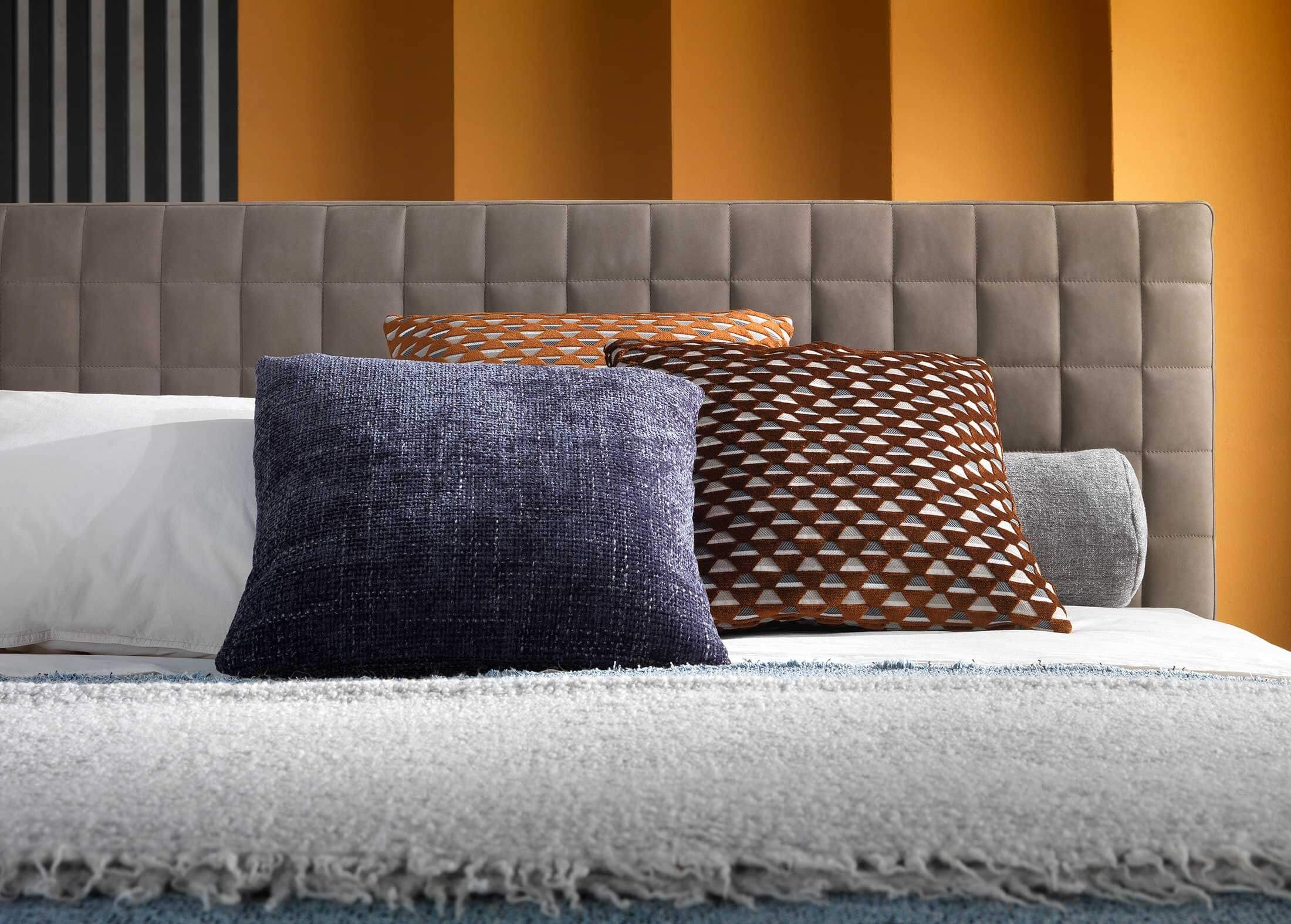 Brandon is a bed characterised by simple, clean lines enhanced by quilting on the headboard, which lends a timeless elegance to any room. Its base reaches down to the floor, creating a feeling of solidity and stability.