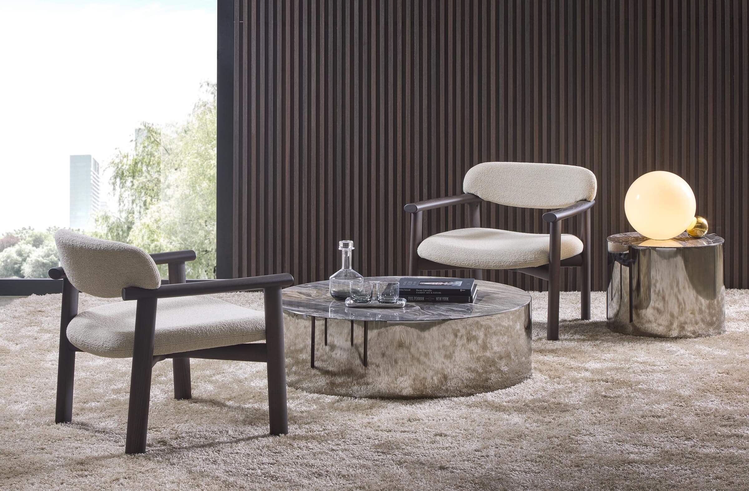 Available in over ten wood finishes, the Afra collection is perfectly suited to residential, contract and hospitality environments. The chair, with its slender profile, is ideal for dining rooms and sophisticated work environments, while the armchair, with its wider, enveloping seat, is the perfect solution for lounges, relaxation areas and prestigious spaces.
