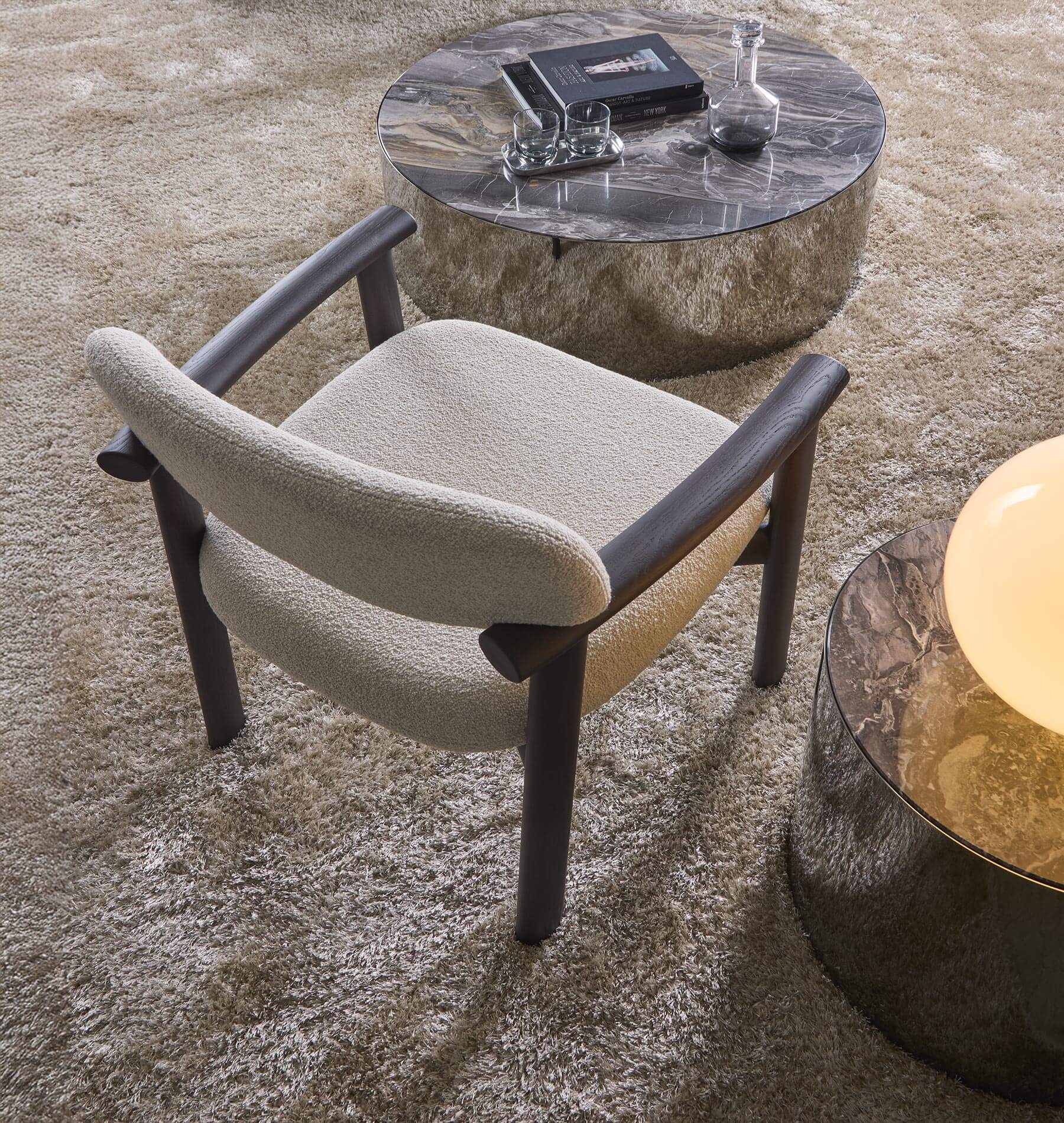 A perfect balance between minimalism and sophisticated functionality, the Afra collection comprises a chair and an armchair, both characterised by essential aesthetics and uncompromising comfort. Inspired by the elegance of the Japanese style, this family of chairs has a wooden frame with clean, strong lines that emphasise the purity of form and visual lightness.