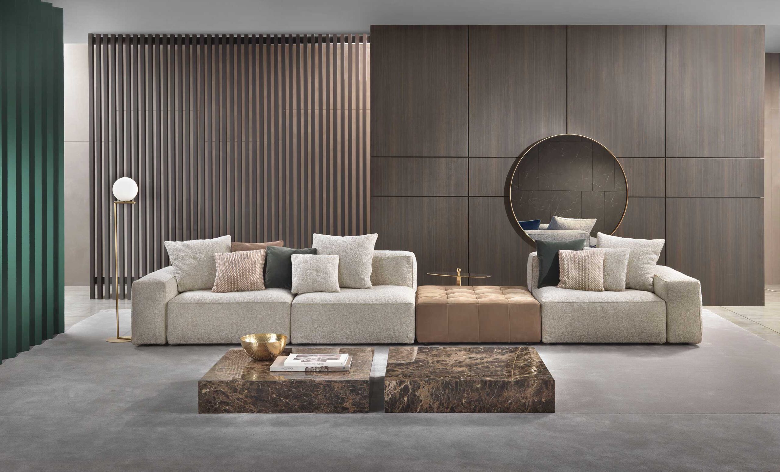 The combination of the Andy sofa and the Gary sofa creates a new elegant and attractive sofa with a modern geometric line. The use of different modules allows for different compositions to suit different projects and spaces.