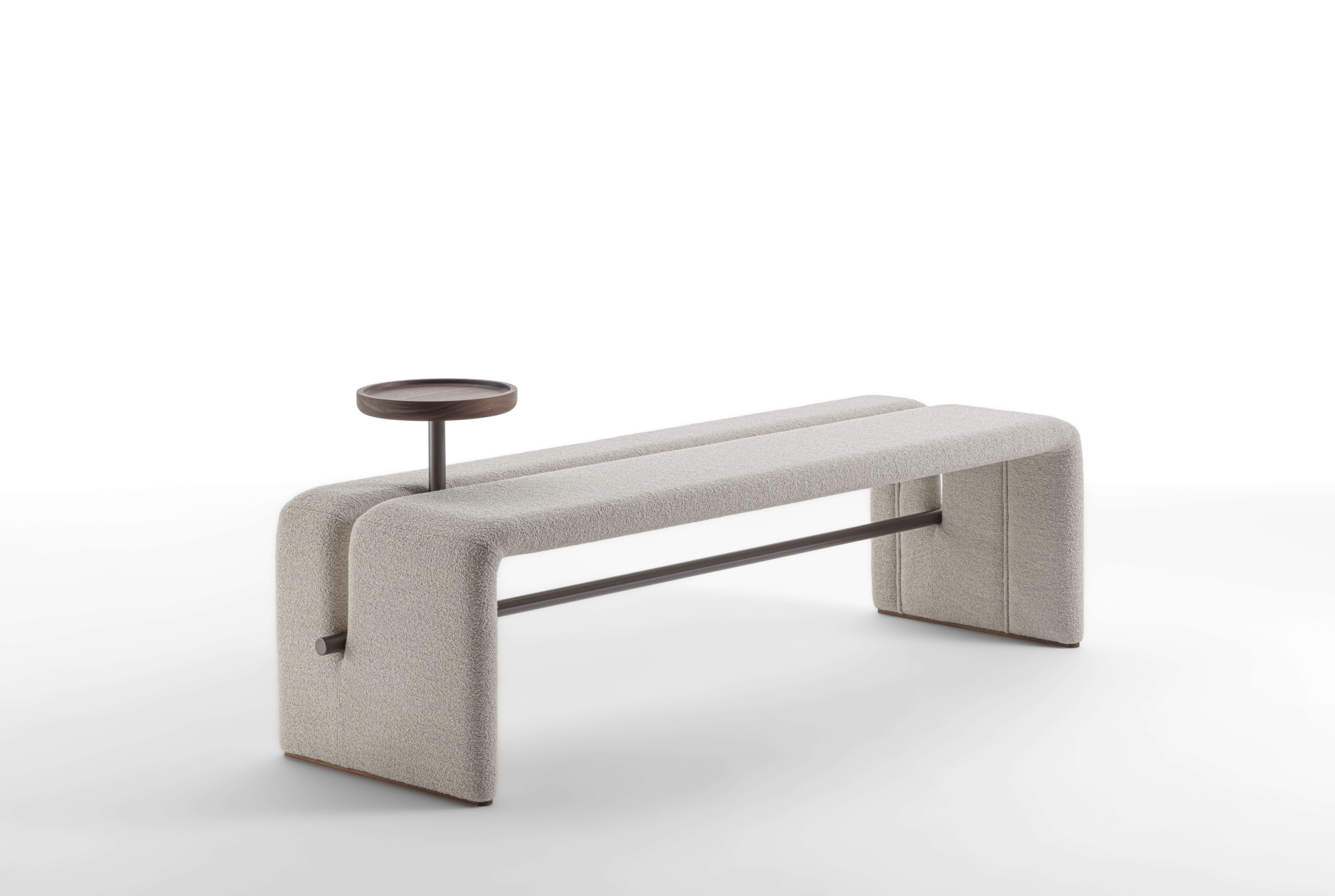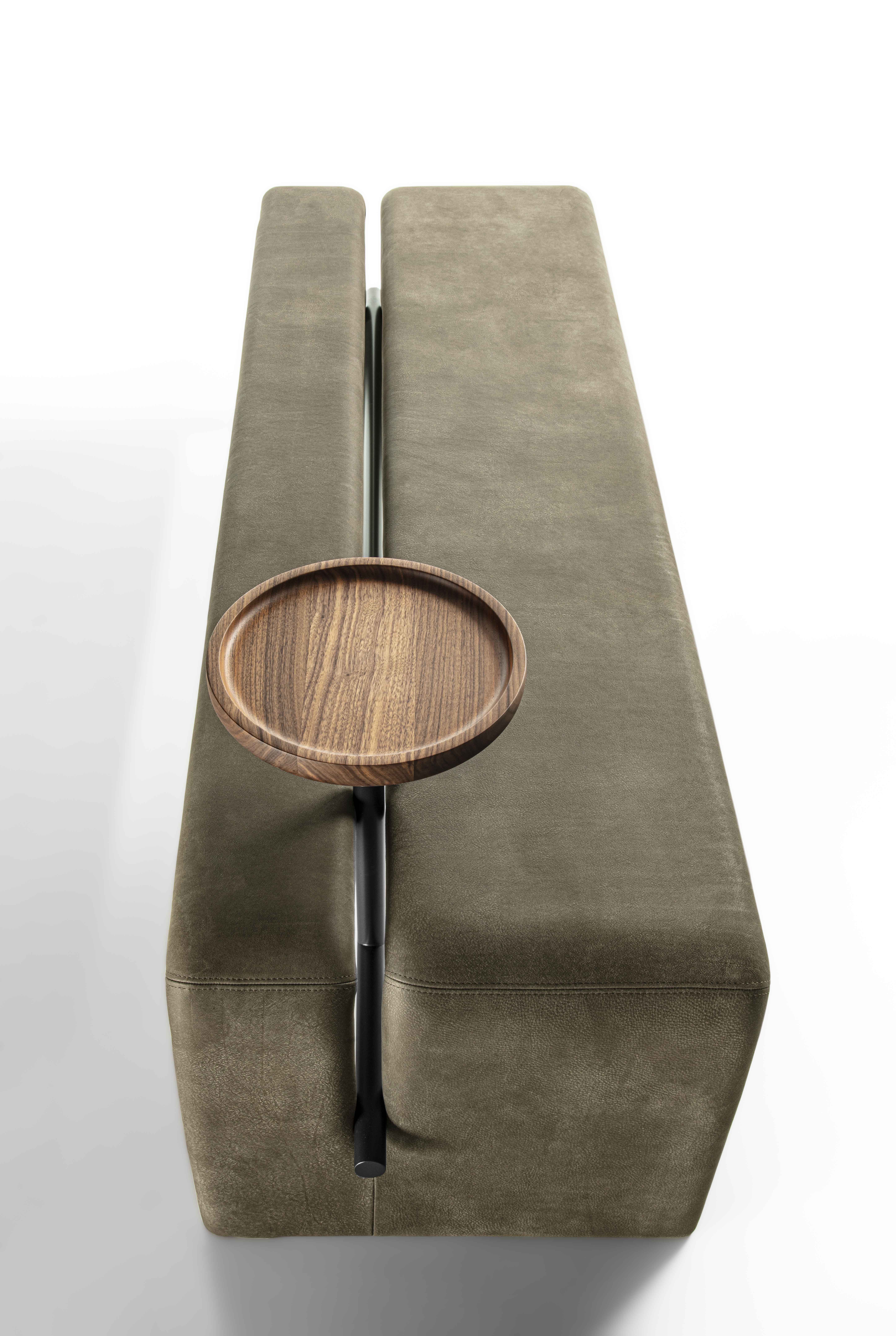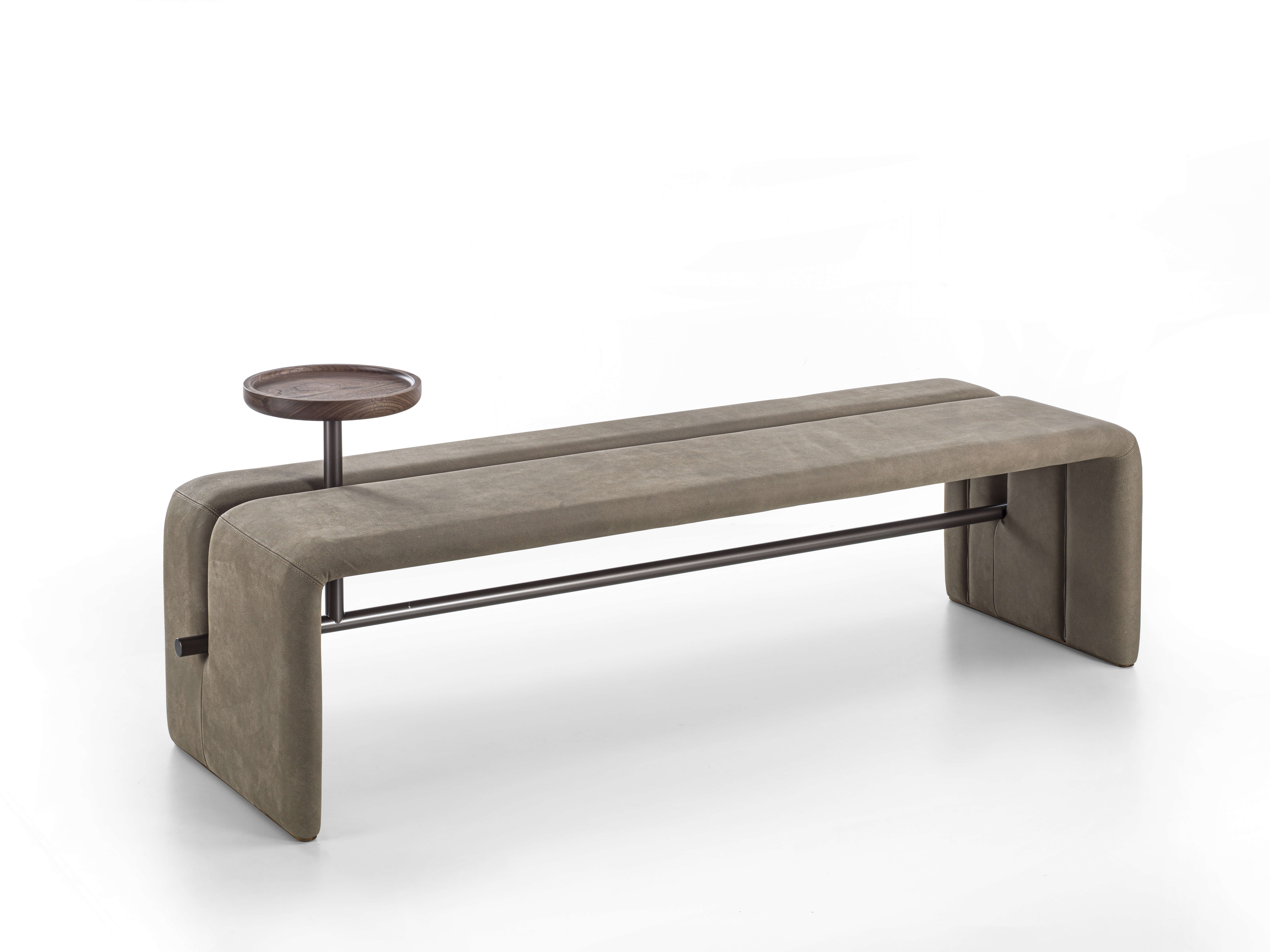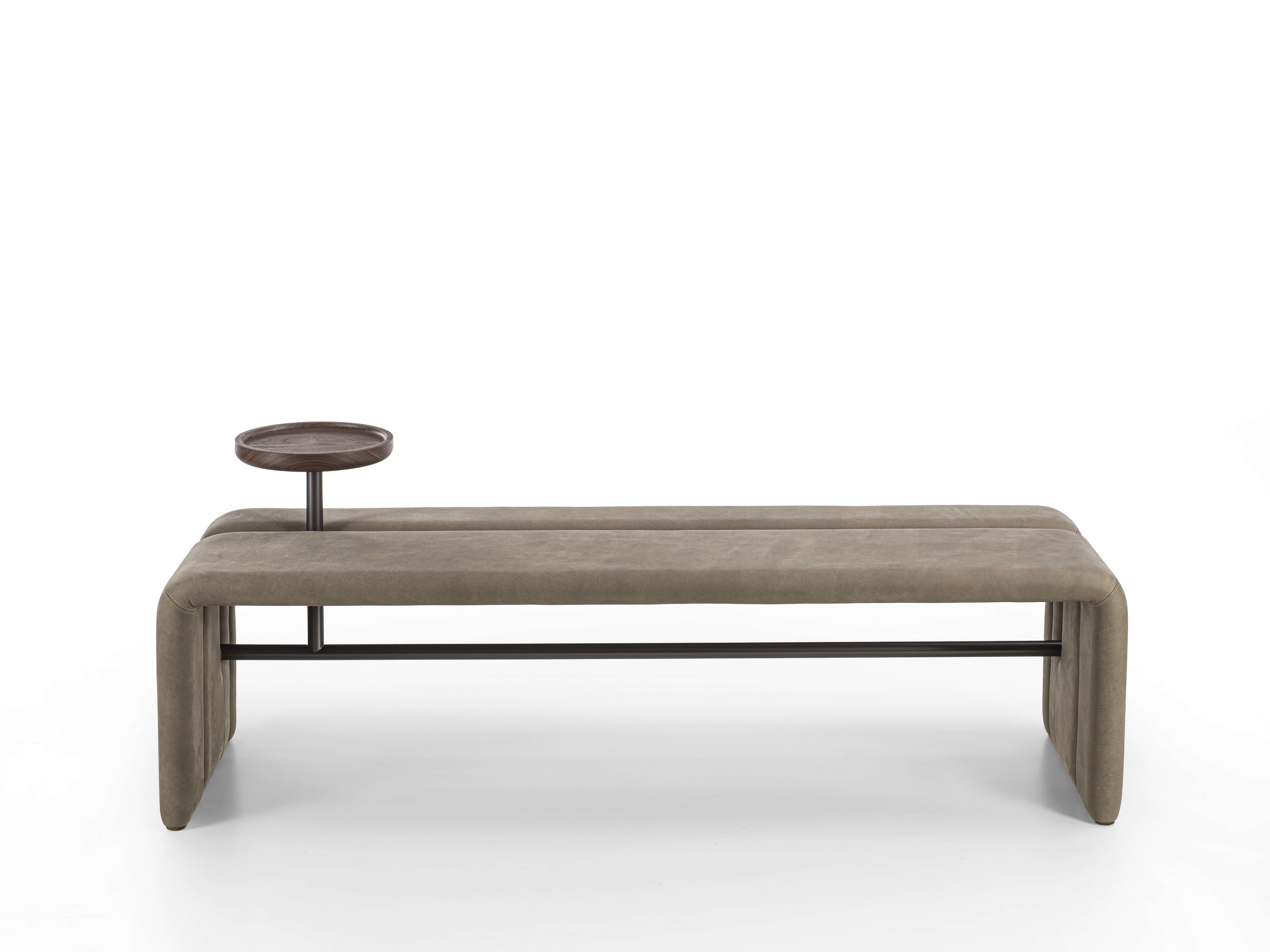 Padded with leather or fabric; Storage tray: solid canaletto walnut wood / solid oak wood / solid black oak wood; Tubular: lacquered black / lacquered bronze