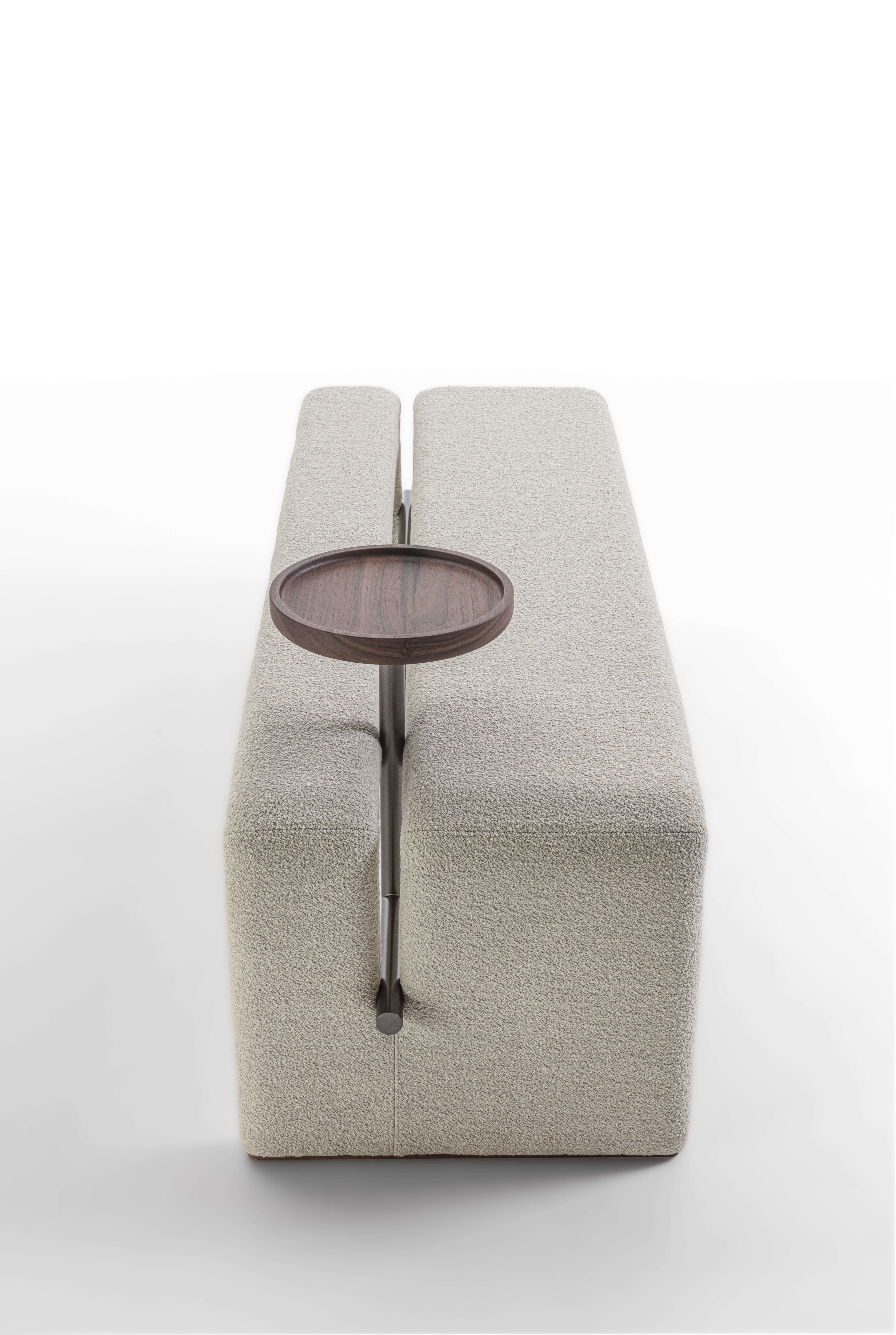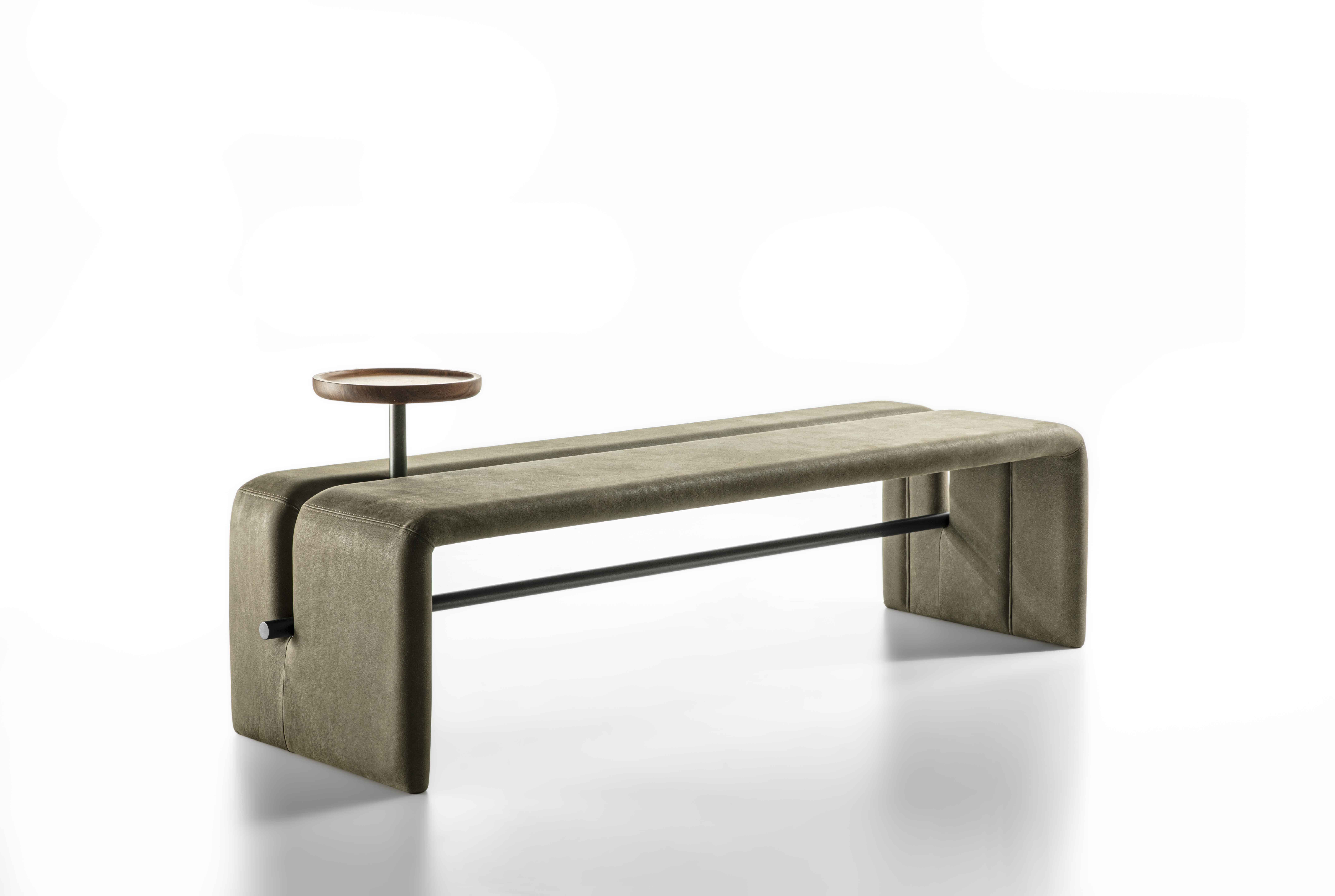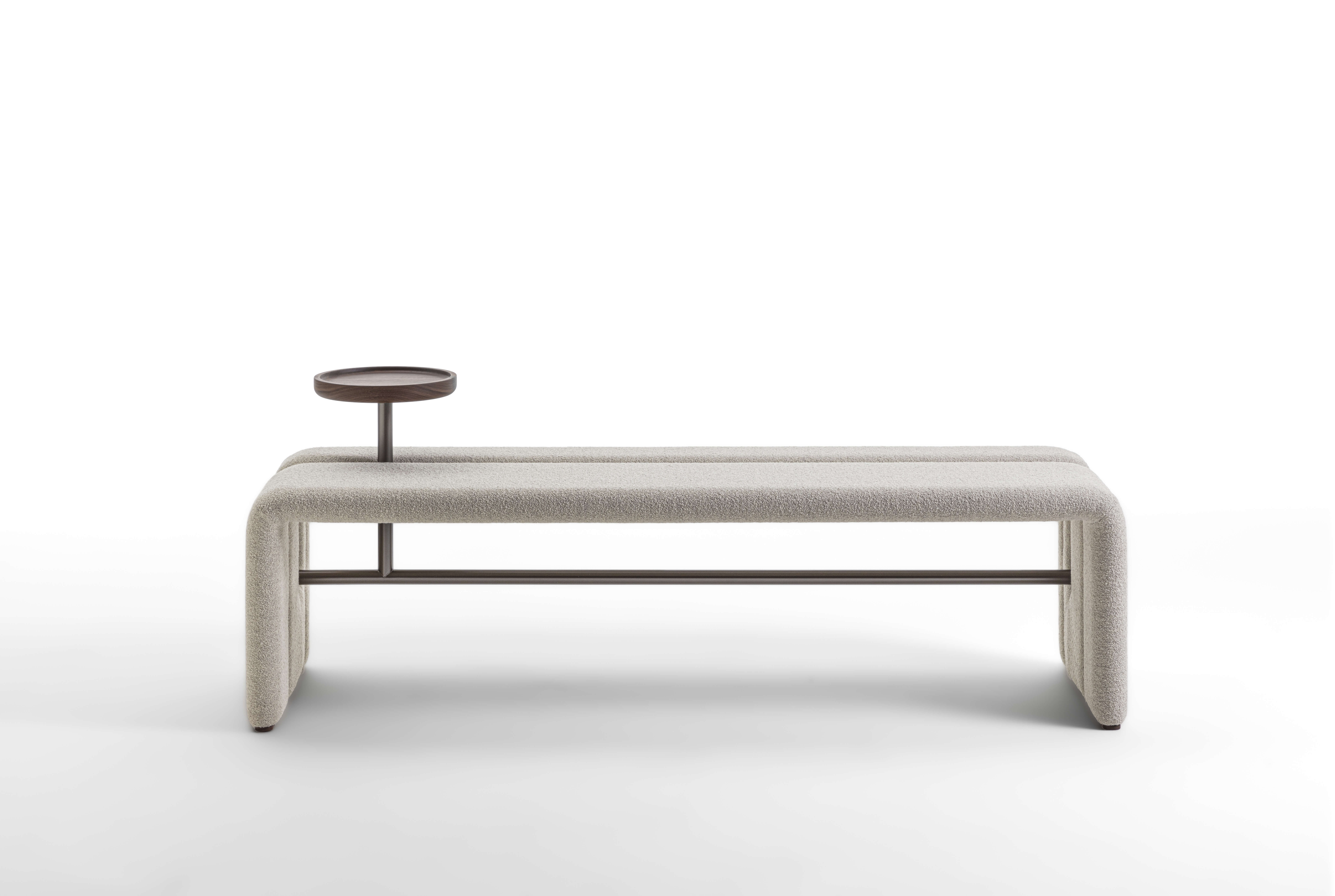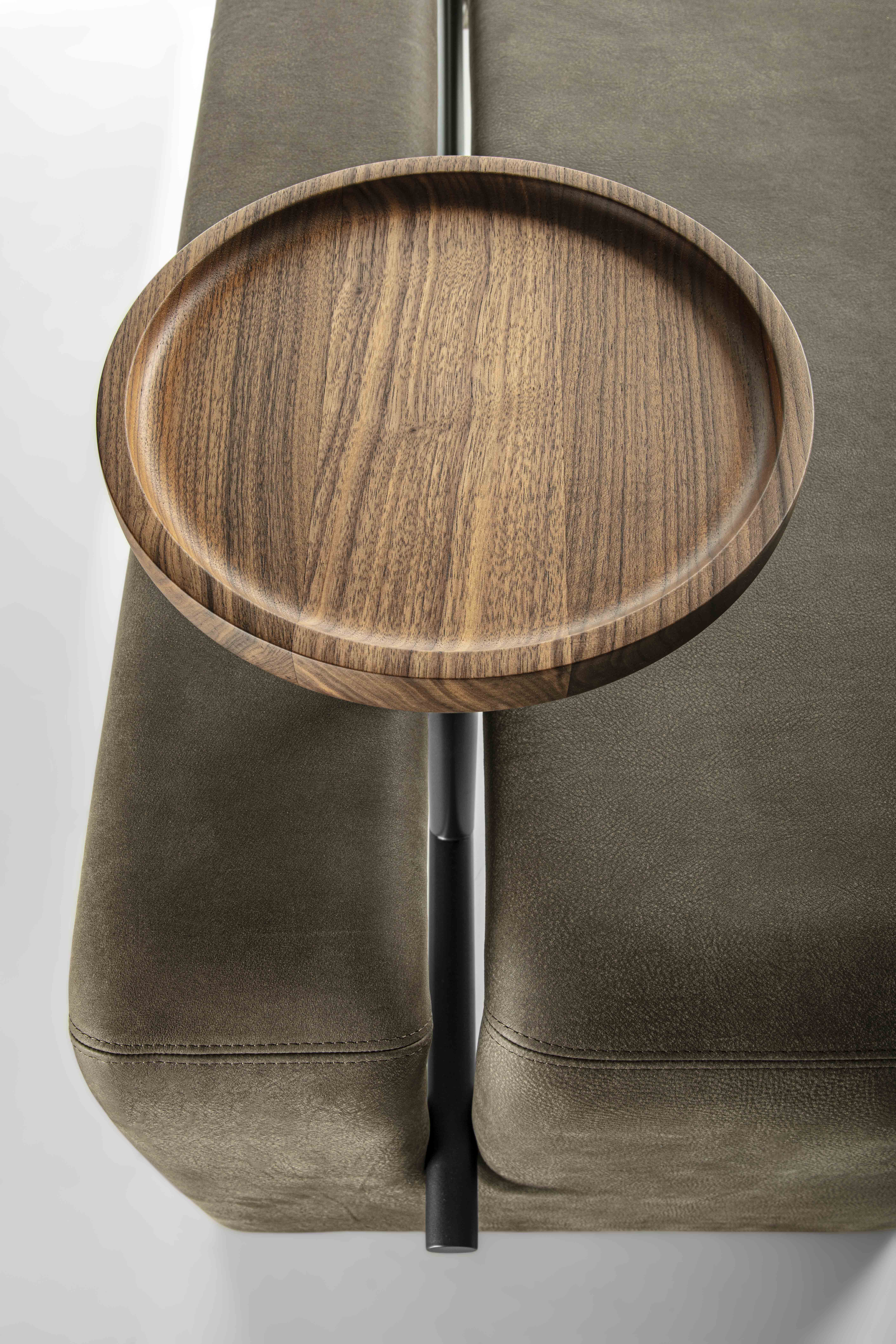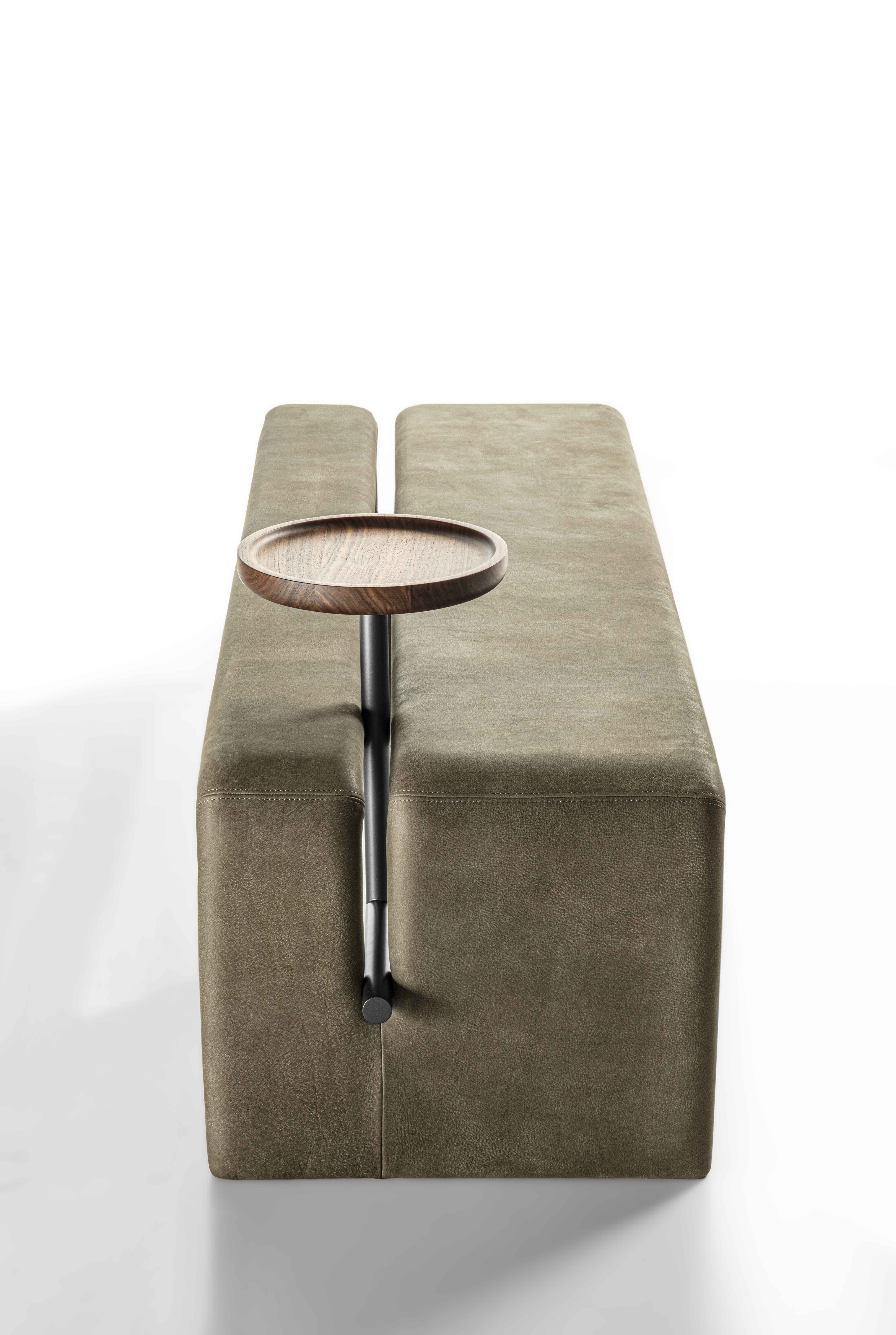 Padded with leather or fabric; Storage tray: solid canaletto walnut wood / solid oak wood / solid black oak wood; Tubular: lacquered black / lacquered bronze