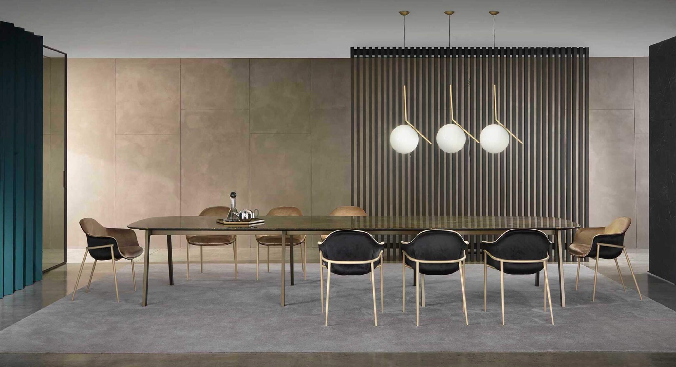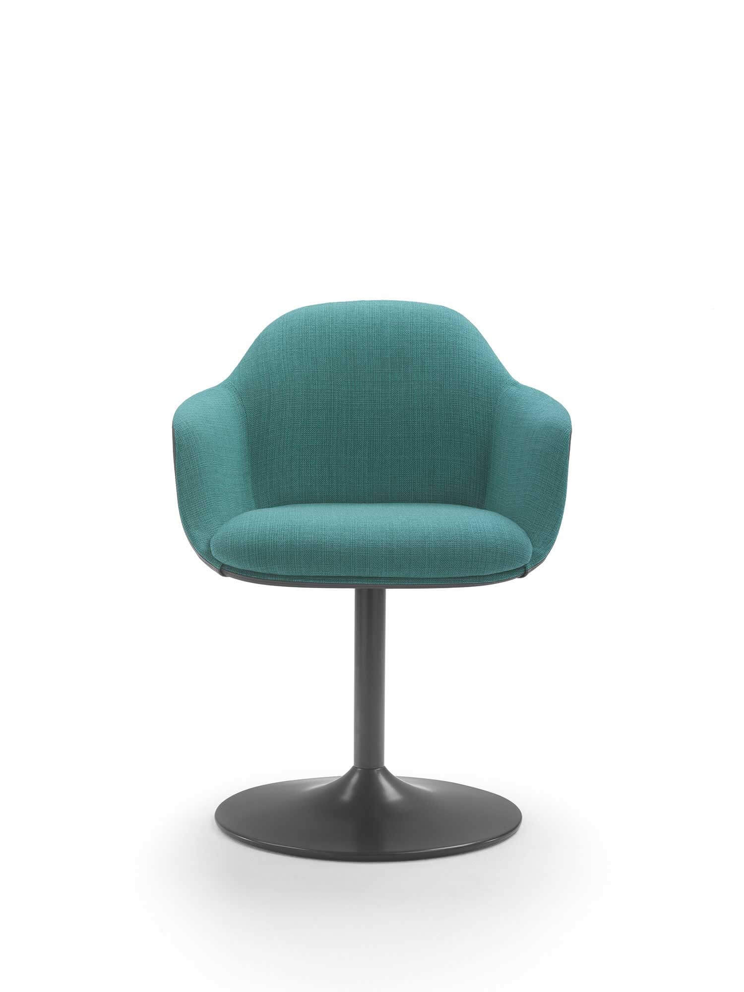 Designed to meet the needs of architects and interior designers, it stands out for the variety of its legs, which allow it to be easily adapted to different contexts. The four-leg version, available in metal or wood, combines solidity and lightness, making it perfect for residential environments with a refined character. For the contract sector, it is available with a central column, offered with a round or four-spoke base, perfect for offices, restaurants and hotels that require functionality without sacrificing elegance.