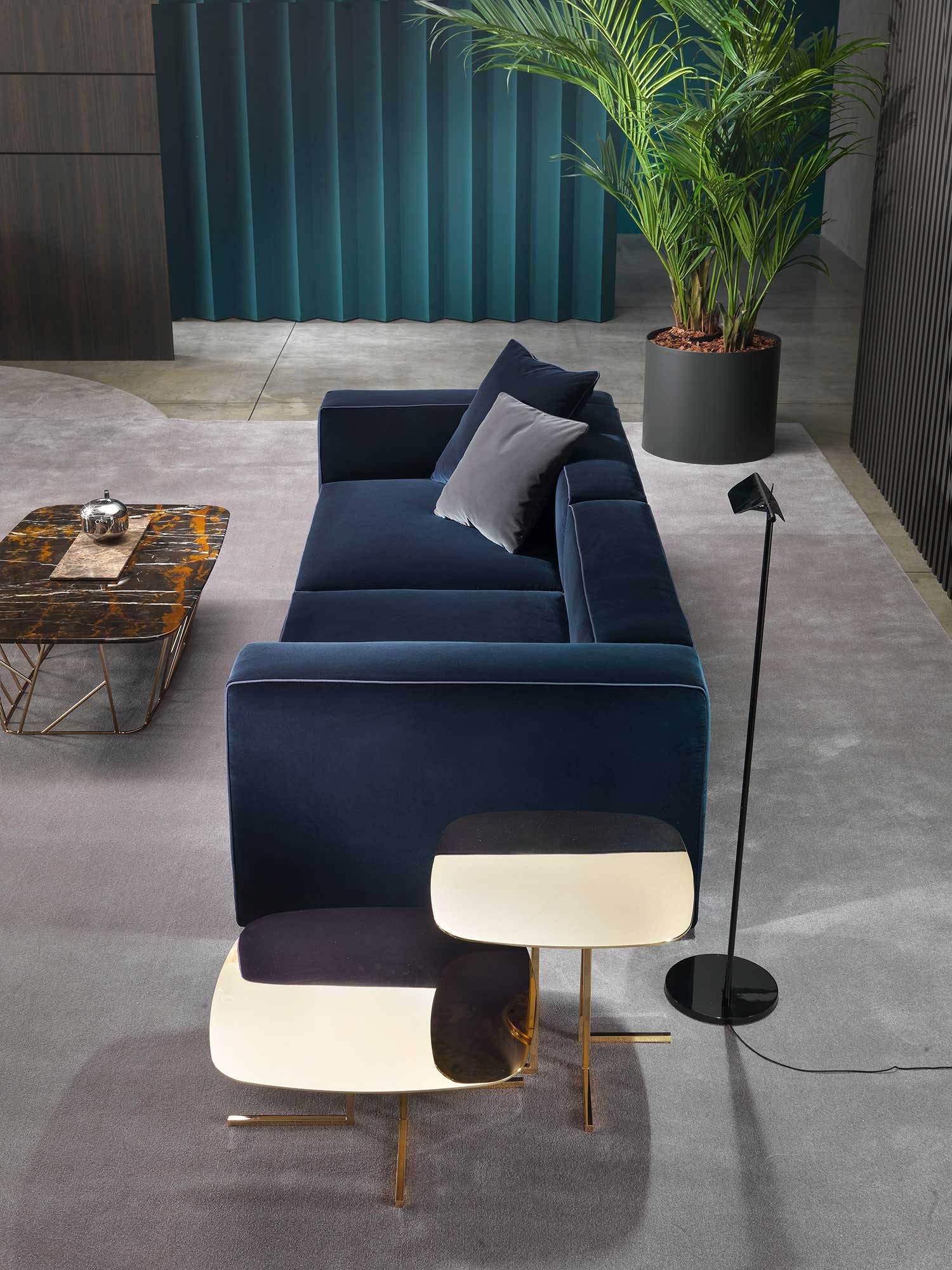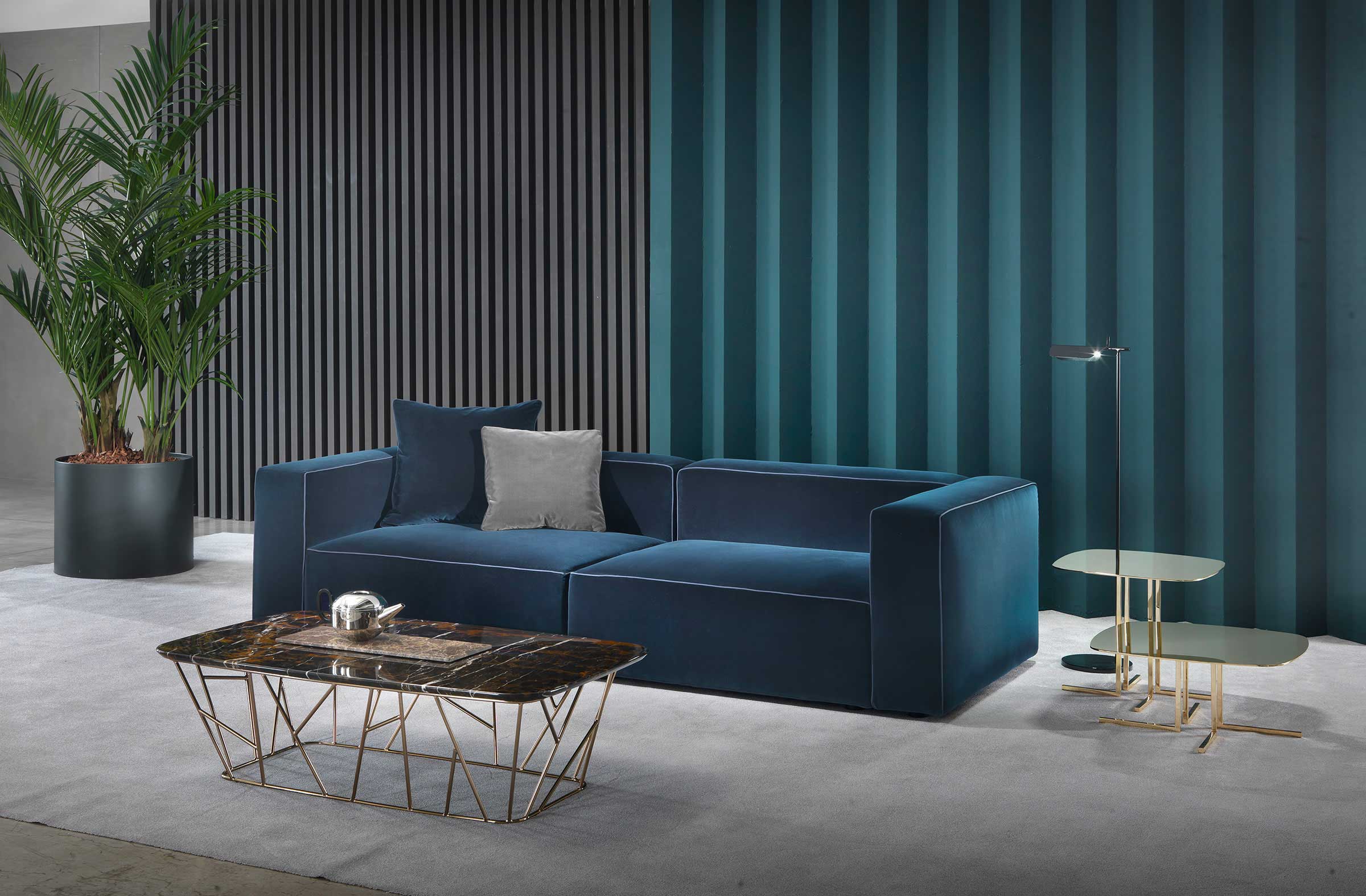 As far as customisation is concerned, it is possible to choose from different types of fabrics, leathers and faux leather to adapt the sofa to the context in which it will be placed. This customisation possibility makes it possible to create a unique atmosphere and to meet the individual tastes and needs of customers.