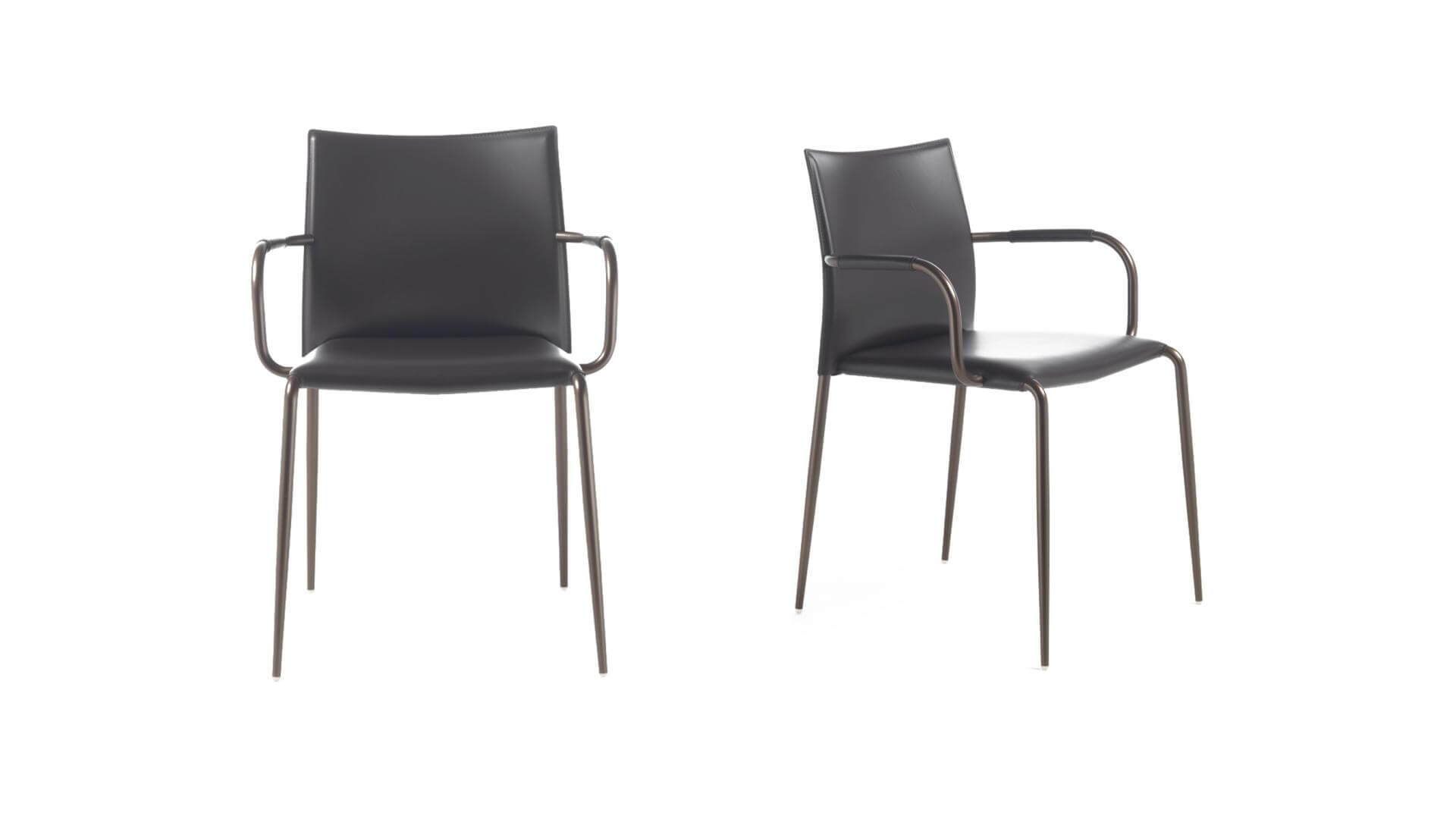 Tubular iron frame, diam. 22 mm.All collection shows essential and simple lines synonymous with great elegance, accompanied by a wide variety of trendy metal finishing. Suitable for all contexts, from residential to hospitality, all items are stackable. Seat pan covered with black technical fabric. Stackable up to a maximum of 4 pieces (standard version); up to a maximum of 10-15 pieces (contract version).