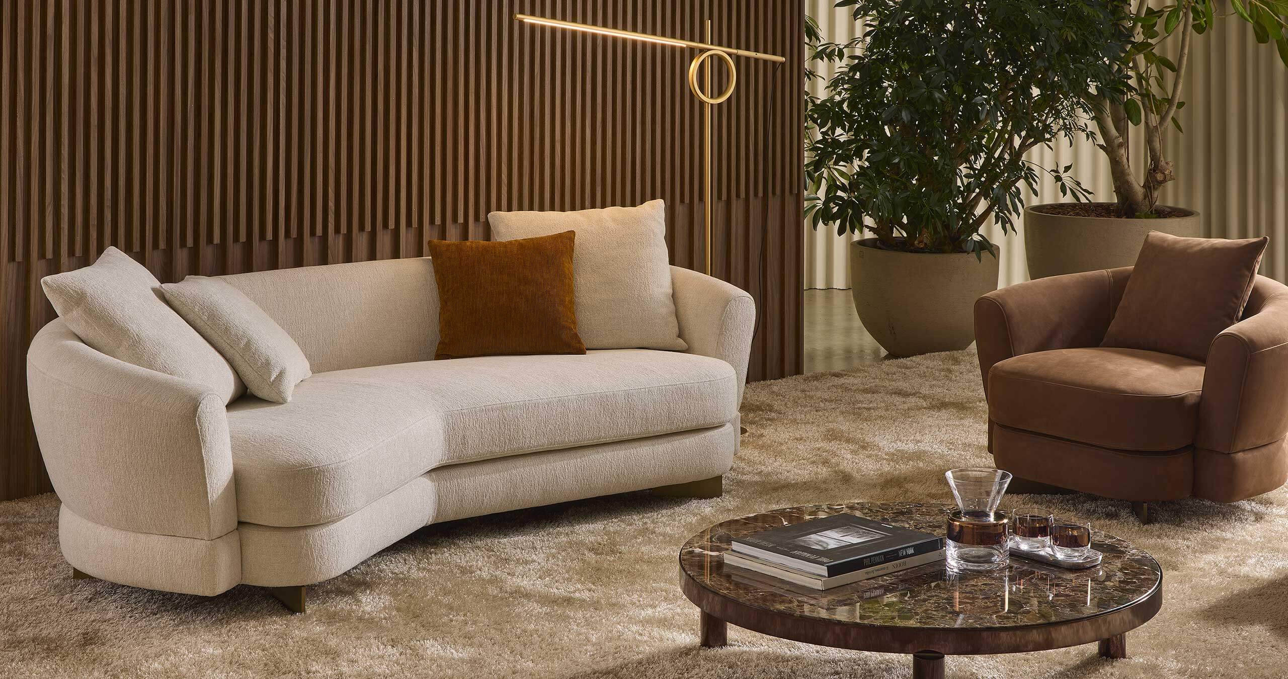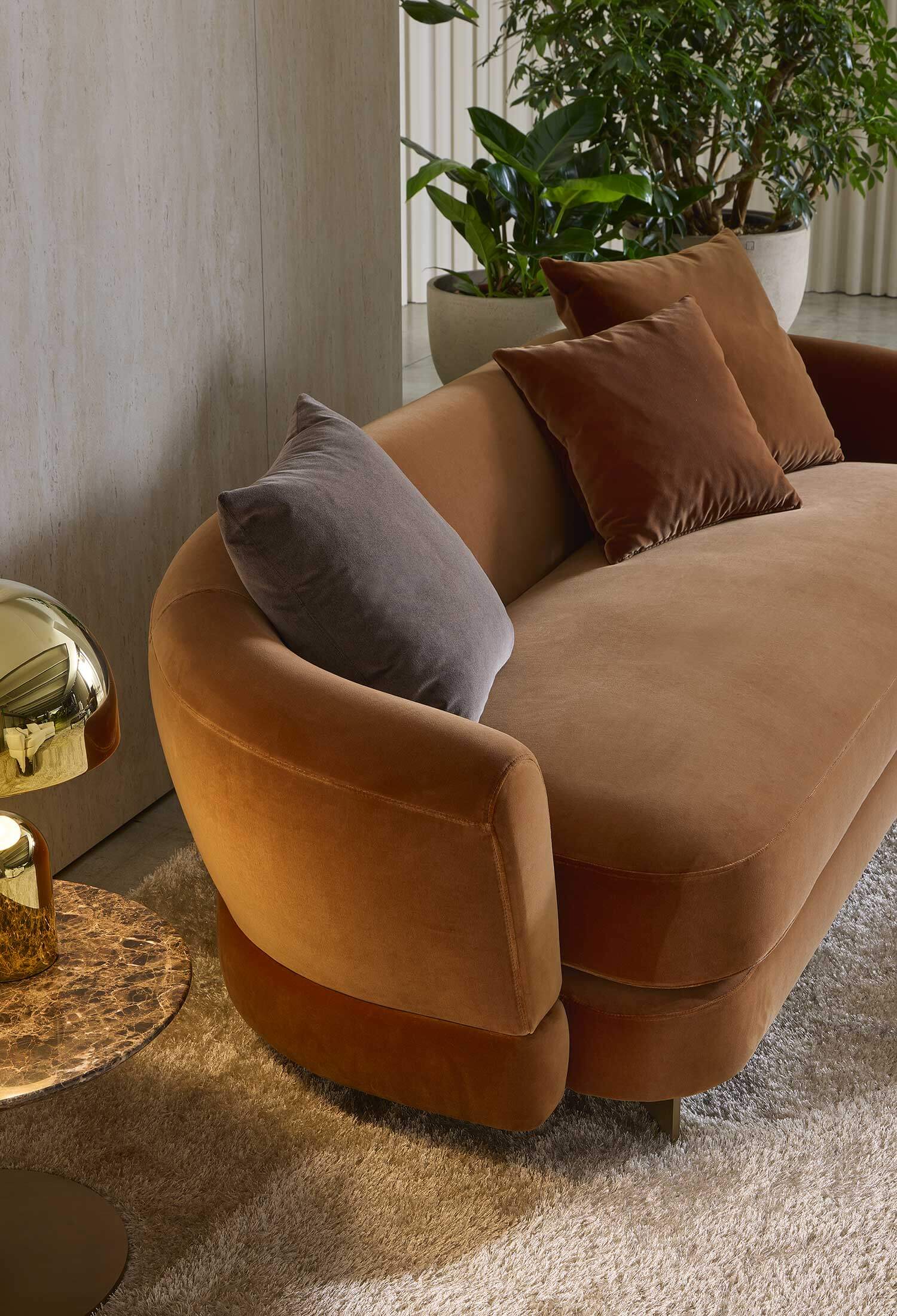 Jeff sofas have a curvaceous, enveloping design with soft lines inspired by retro charm. This style gives them a cosy and homely feel, perfect for creating a warm and comfortable environment. We offer different shapes in our catalogue: round, slightly angled and linear to suit different spaces and layouts.
