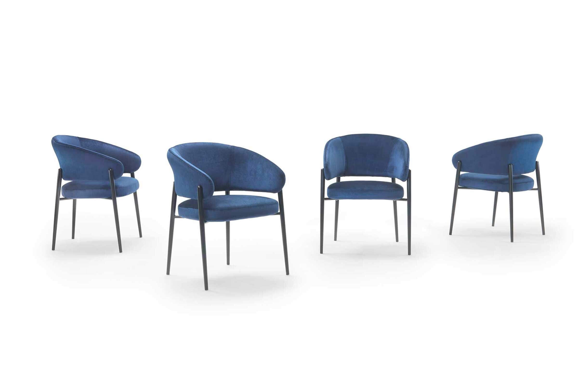 The tubular metal frame provides both strength and visual lightness, while the padded seat and backrest ensure maximum comfort. The combination of materials—metal, fabric, leather, or faux leather—creates an elegant and dynamic interplay of textures, enhancing Linda’s modern essence.