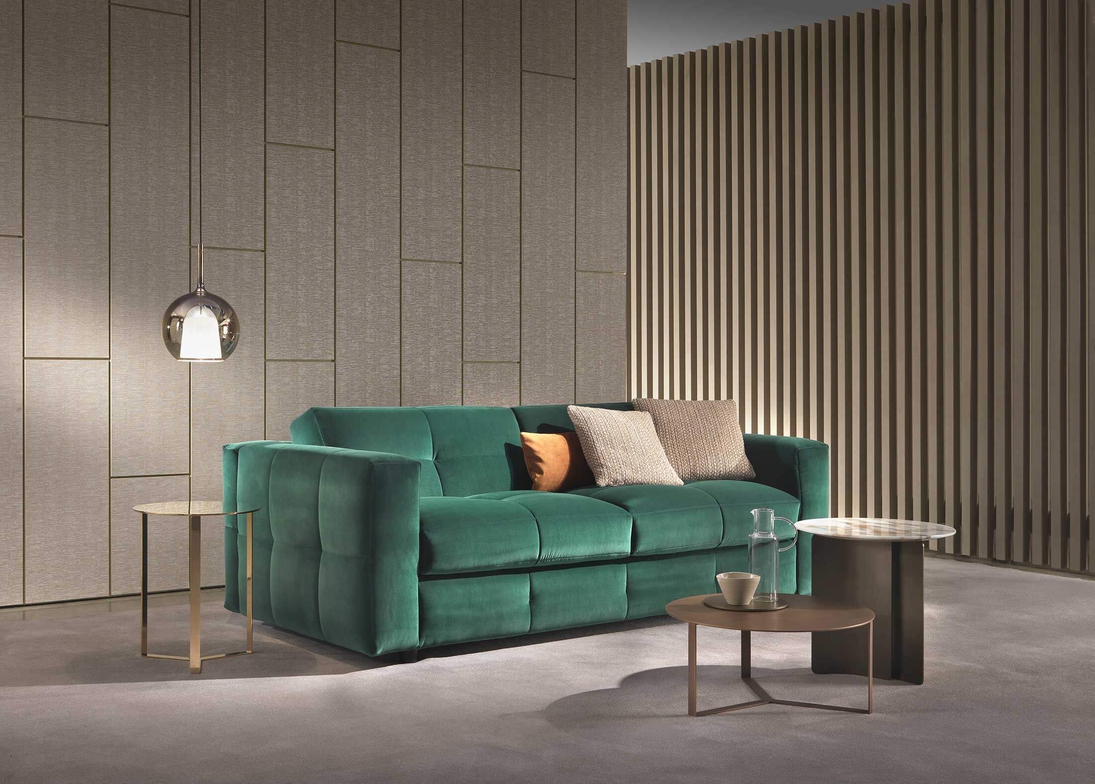 One of the distinctive features of the Lucas sofa bed is its quilting, which adds a touch of class and sophistication to the overall design. Its patented bed mechanism is extremely practical and functional. Thanks to this innovative system, the opening and closing of the sofa takes place in one simple movement. It is no longer necessary to remove the seat and back cushions, as they remain firmly anchored to the structure of the mechanism. This makes the conversion process from sofa to bed and vice versa quick and uncomplicated.