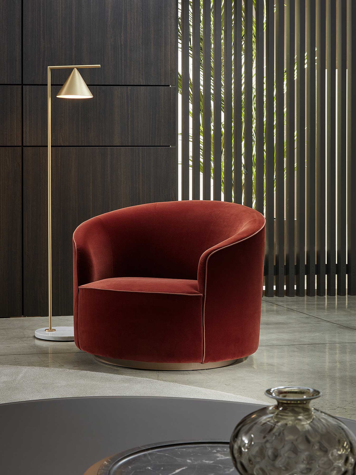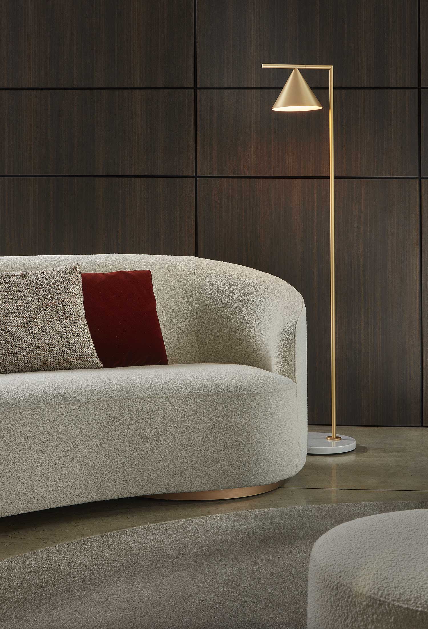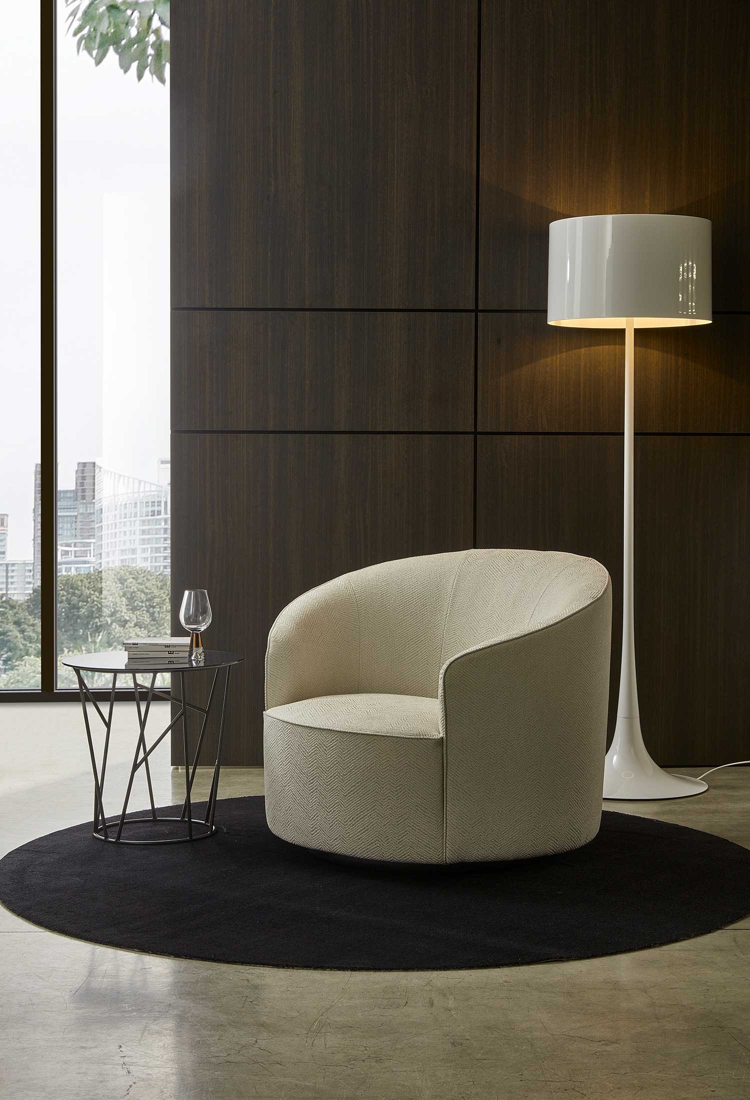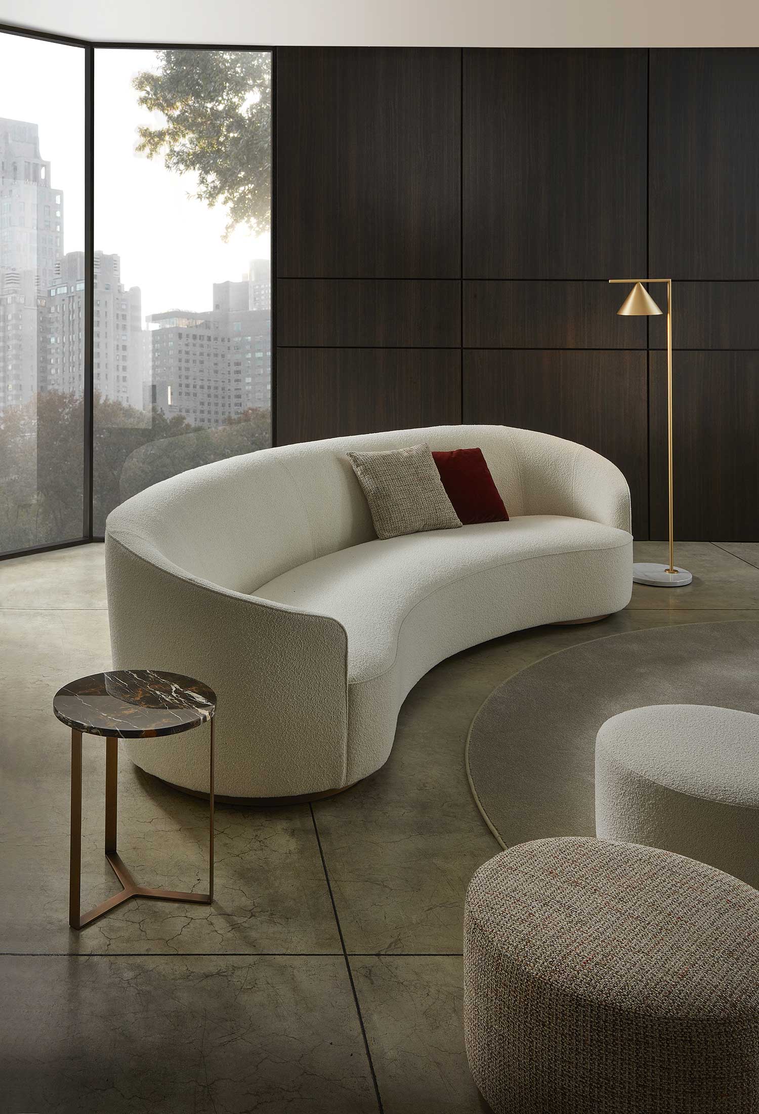 The sofas, armchairs and ottomans in the Moon collection are characterised by curved, elegant lines, with soft, rounded volumes in the upholstered parts and a light metal base on which they rest. This combination offers a design that is distinguished by its lightness, while at the same time presenting solid and compact volumes.