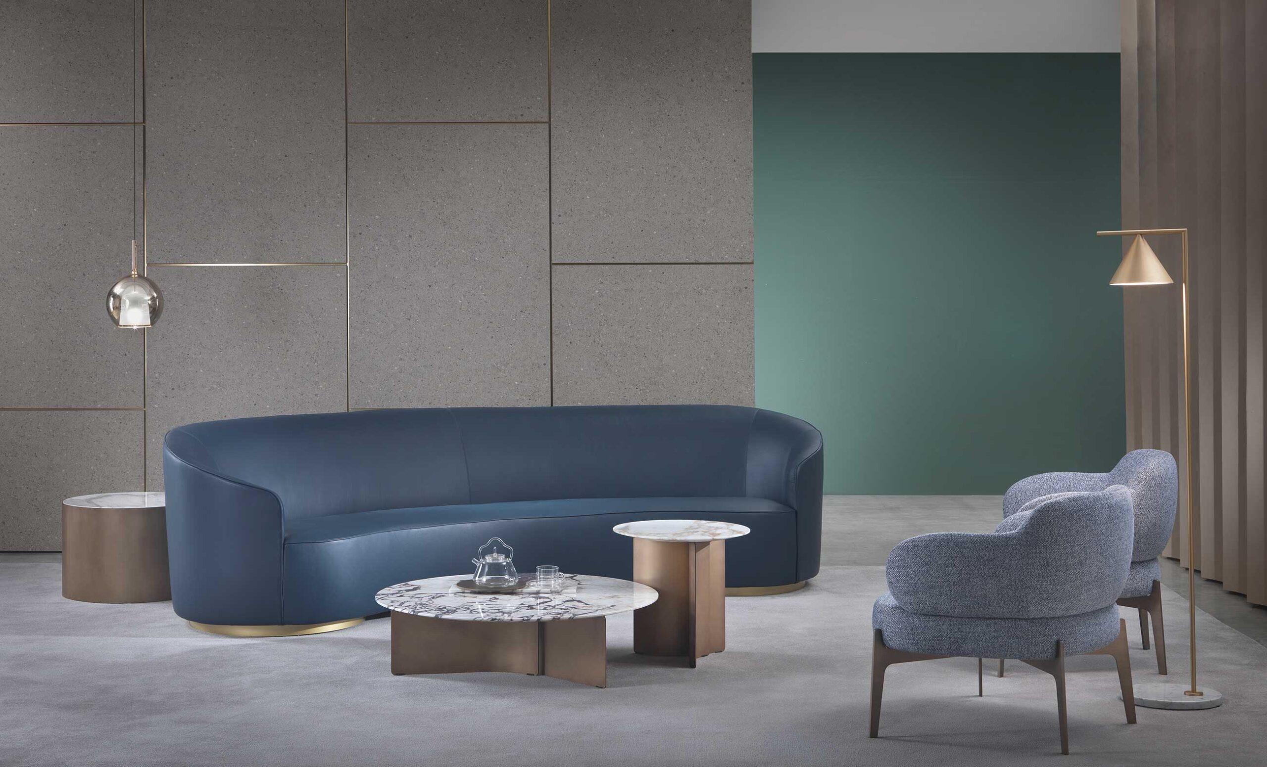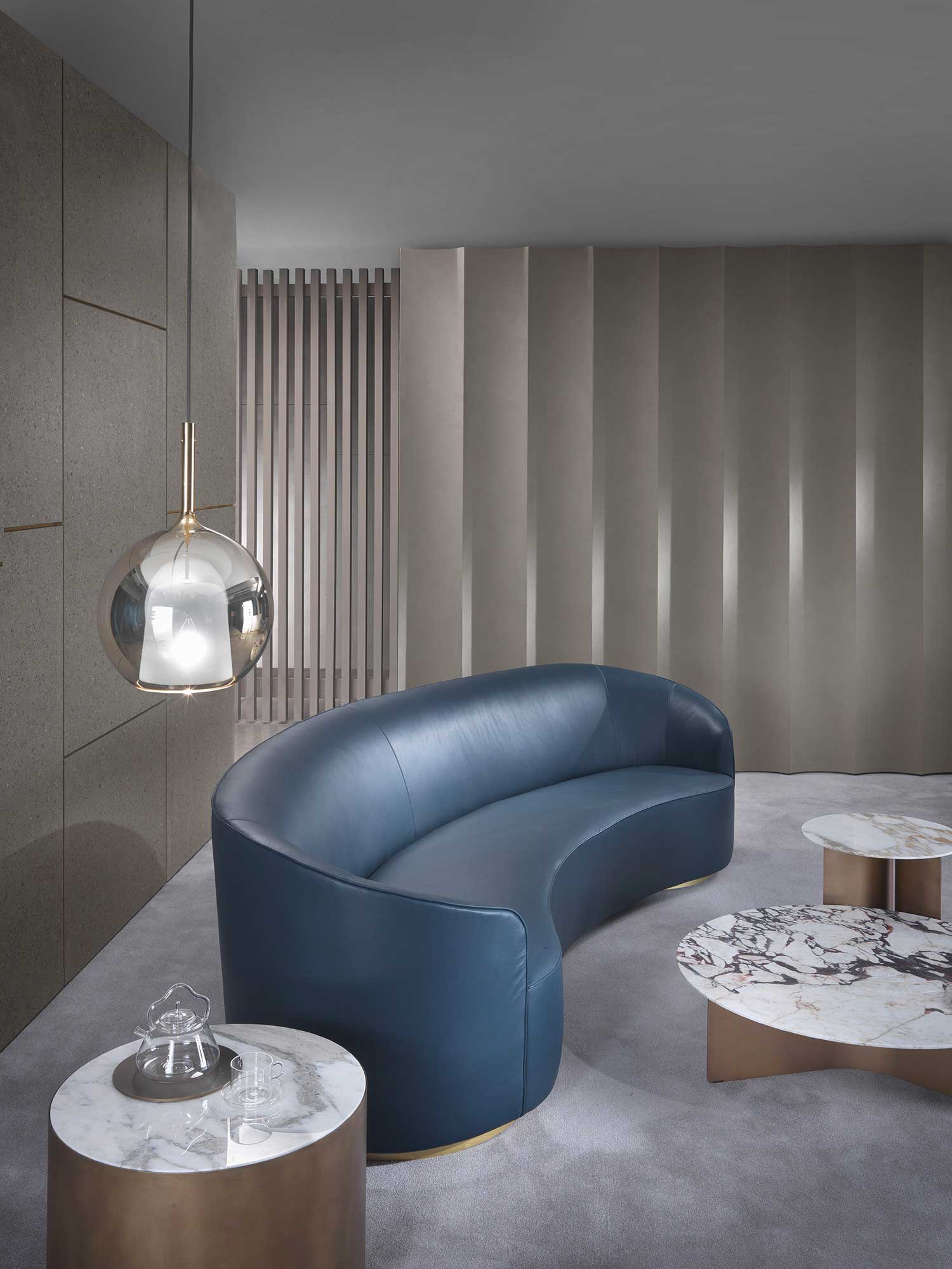 Another strong point of the Moon collection is the possibility of customisation. Thanks to our technical department, the sofas can be made in customised lengths to meet specific customer requirements. You can customise the upholstery by choosing between different materials and finishes for the metal bases. This flexibility allows you to create a unique and customised product for any environment, whether residential or contract.