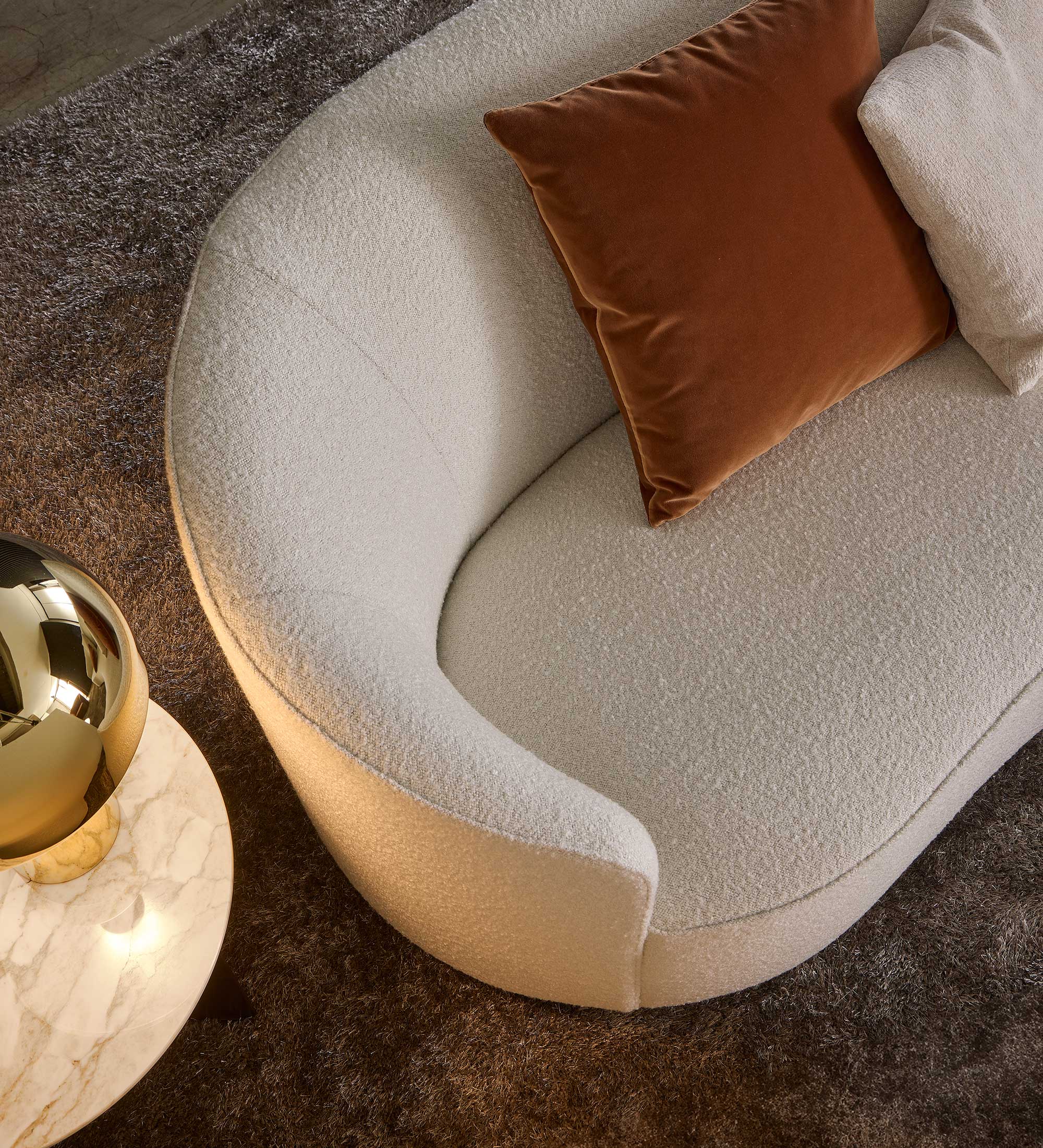 One of the key elements of this design is the great comfort that the Moon sofas offer, enveloping and creating a warm, homely atmosphere. The collection offers various shape options, including straight sofas, round sofas and even modular sofas, which allow for corner shapes. This versatility allows the Moon sofas to be adapted to different arrangements and configurations in space.