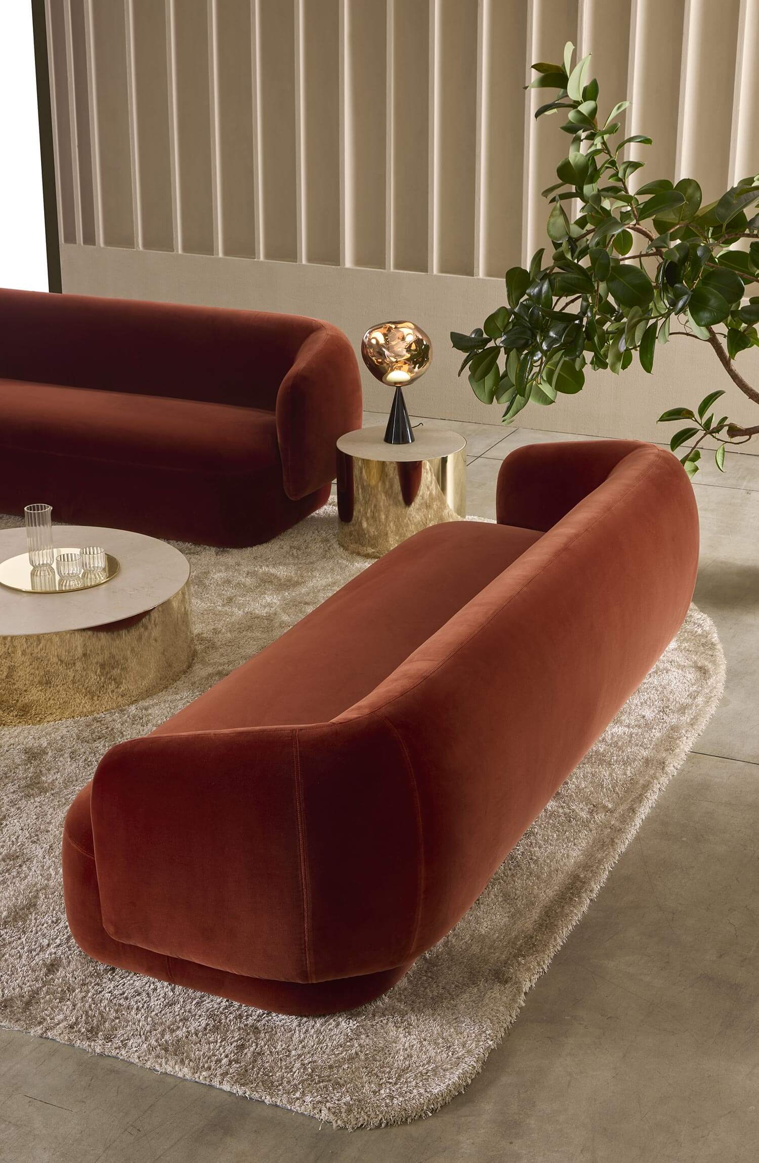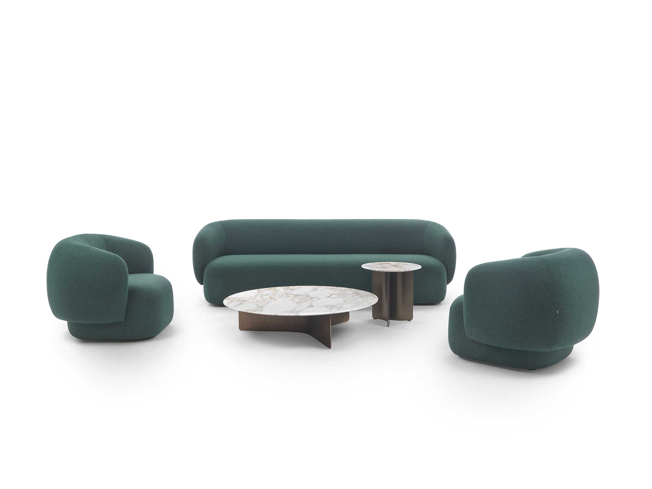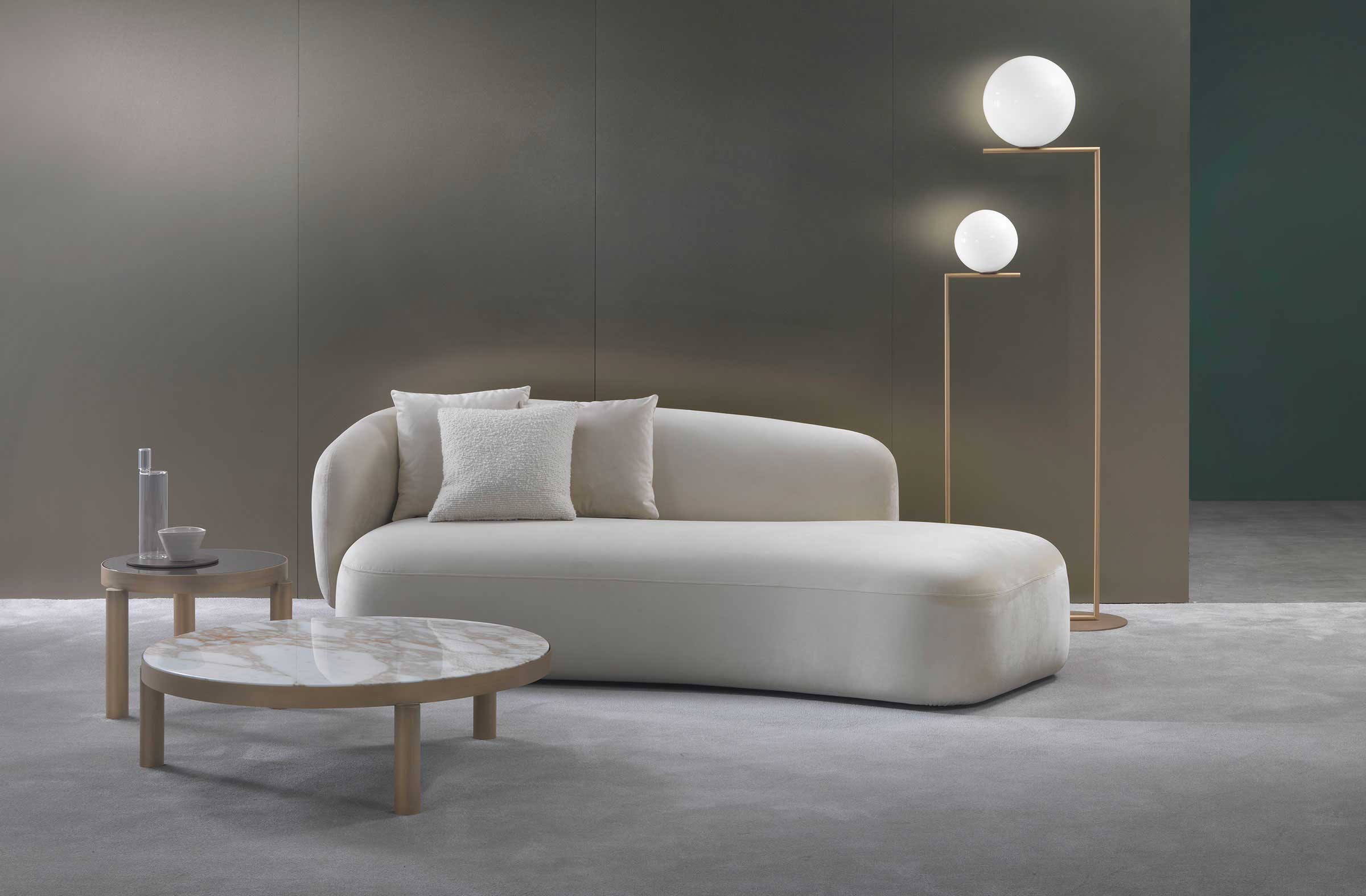 Noah sofas and armchairs are characterised by a sinuous, enveloping design with soft lines inspired by the charm of the 1970s. This style gives them a cosy and homely feel, perfect for creating a warm and comfortable ambience. The range of available sizes includes both curved and straight sofas, allowing them to adapt to different spaces and layouts.
