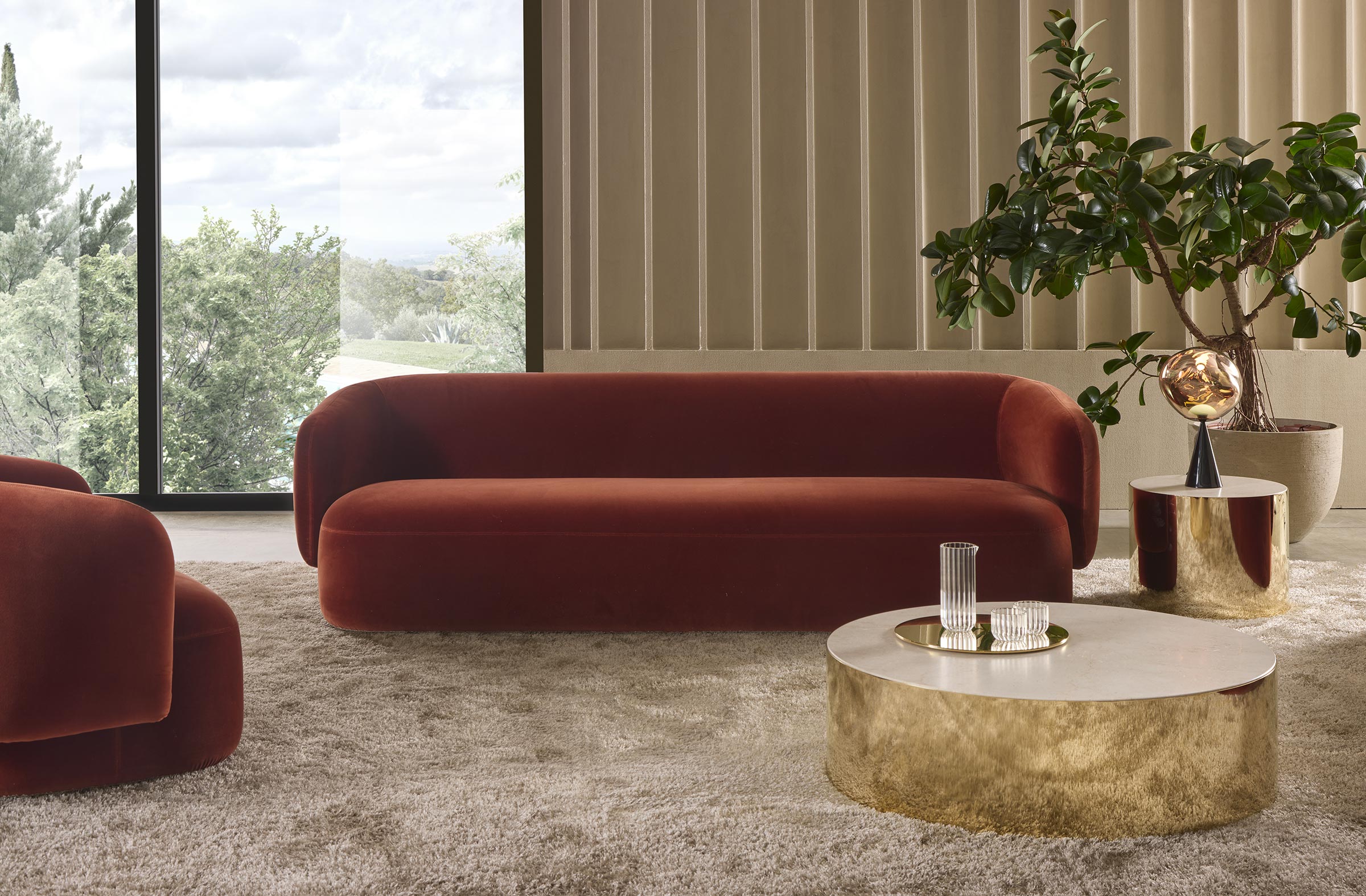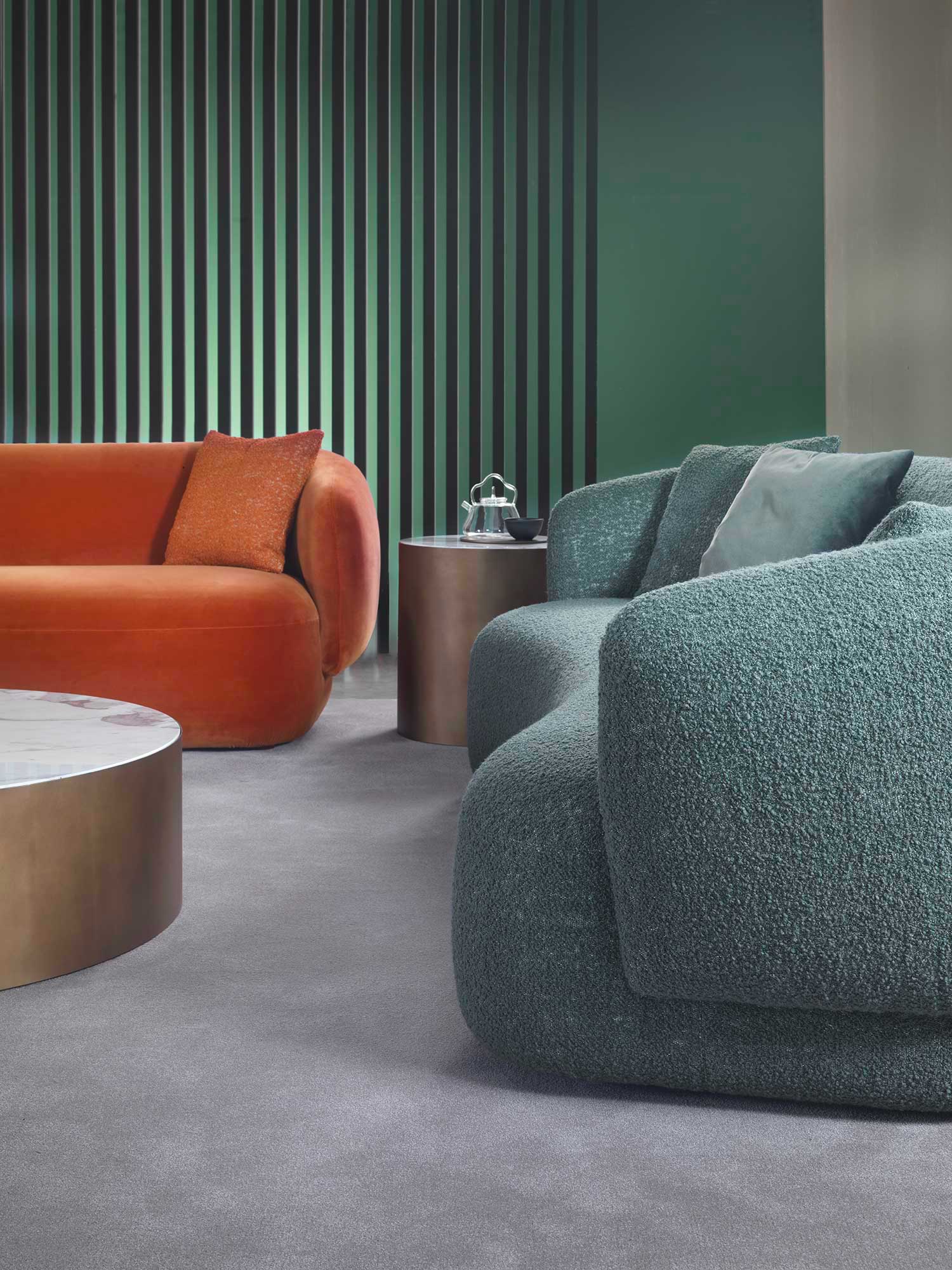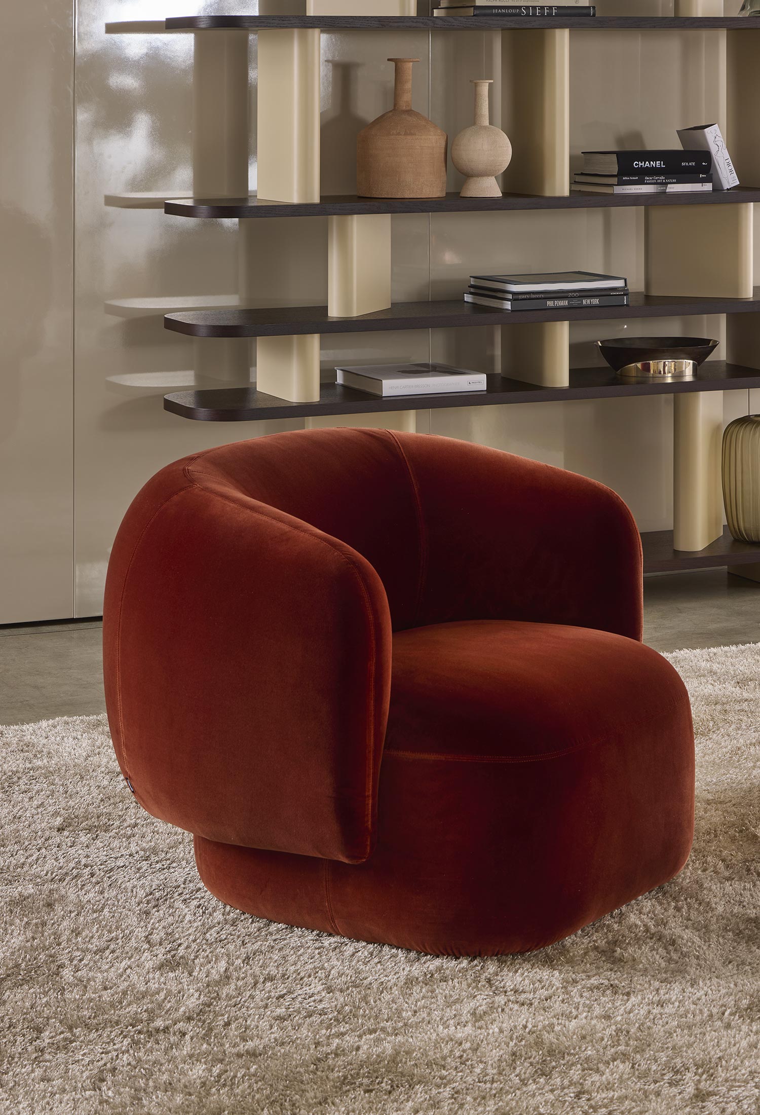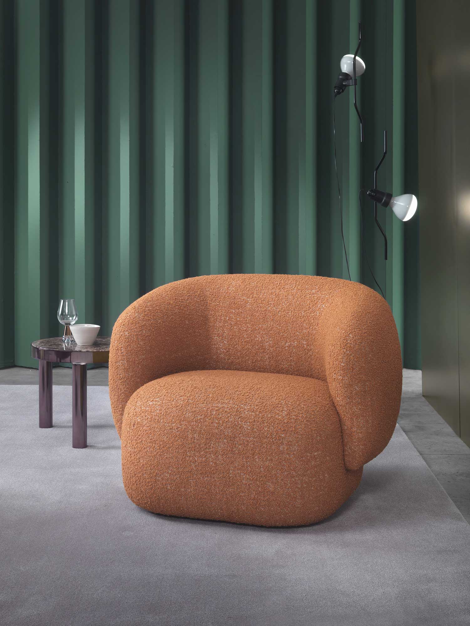 Noah sofas and armchairs are characterised by a sinuous, enveloping design with soft lines inspired by the charm of the 1970s. This style gives them a cosy and homely feel, perfect for creating a warm and comfortable ambience. The range of available sizes includes both curved and straight sofas, allowing them to adapt to different spaces and layouts.