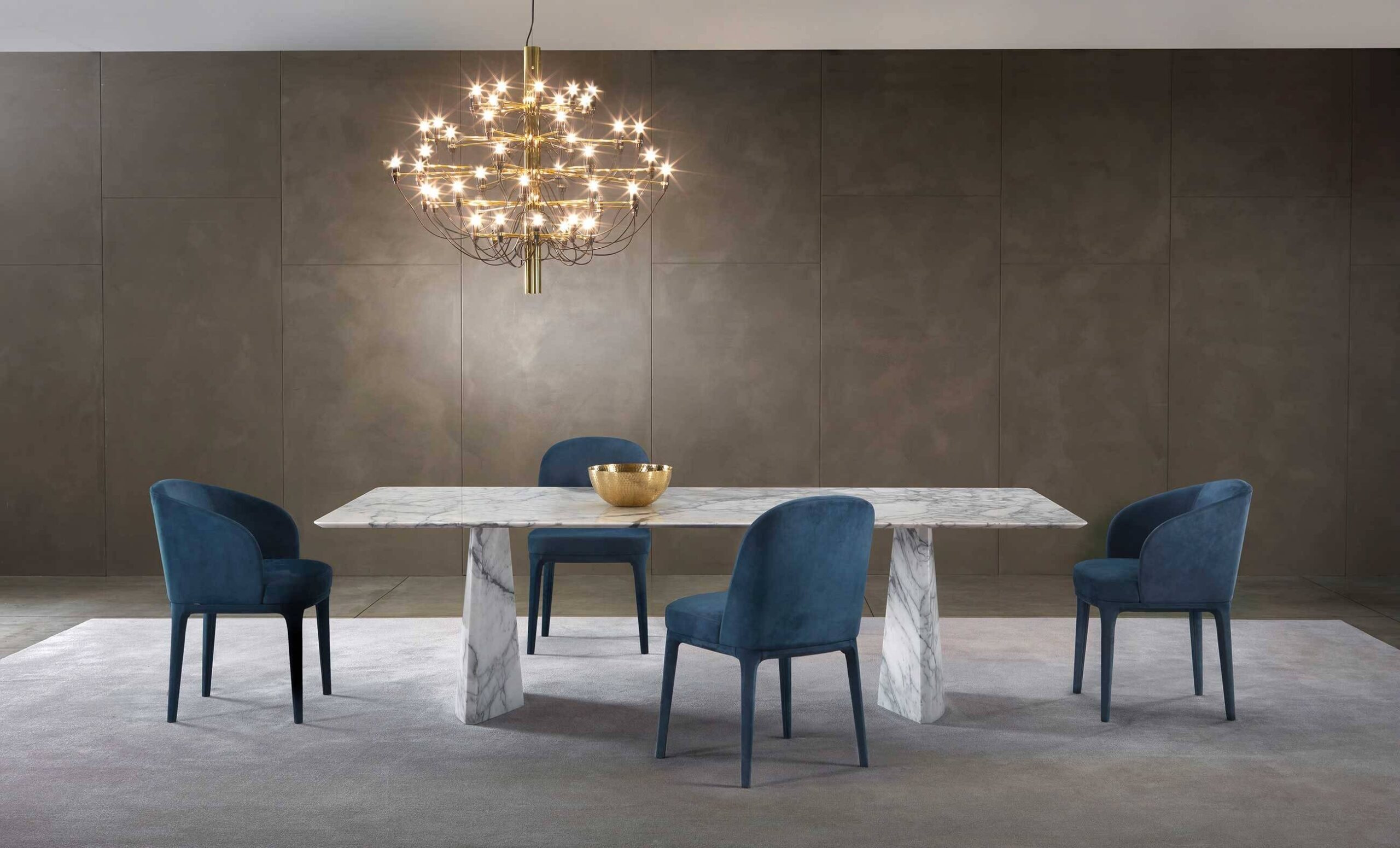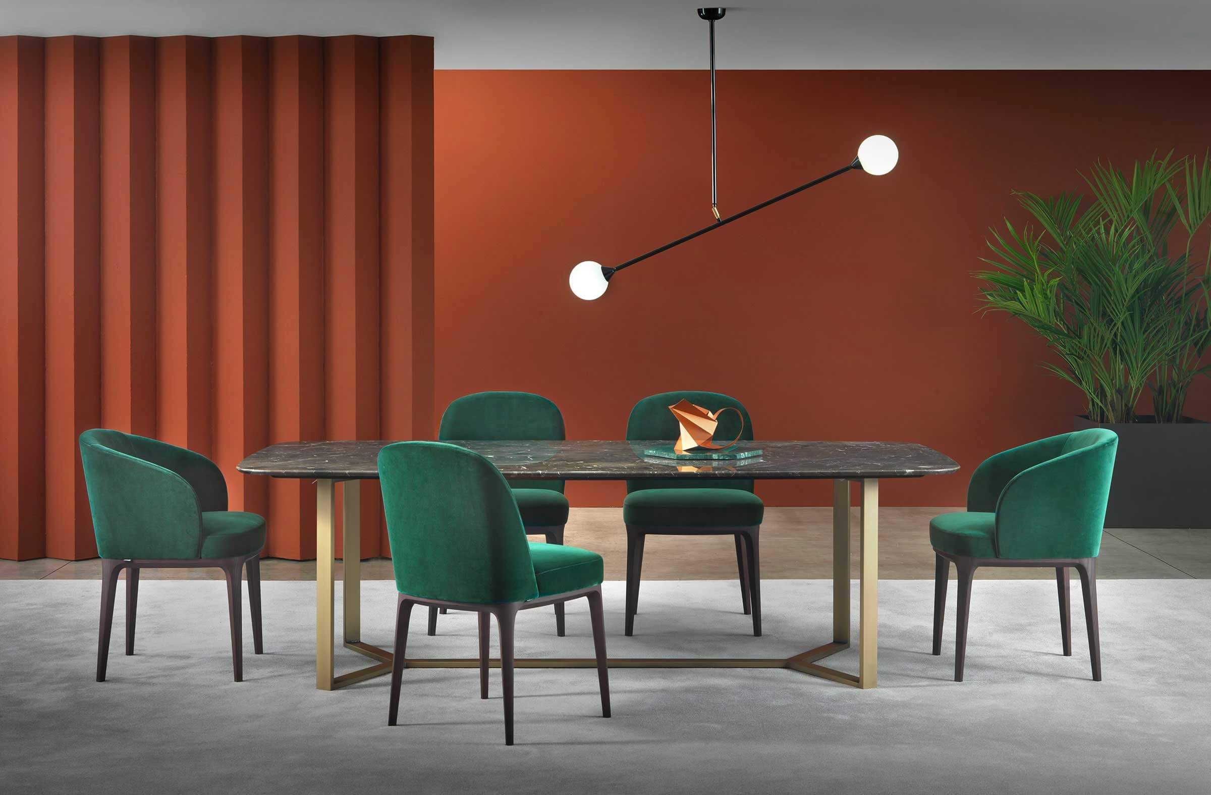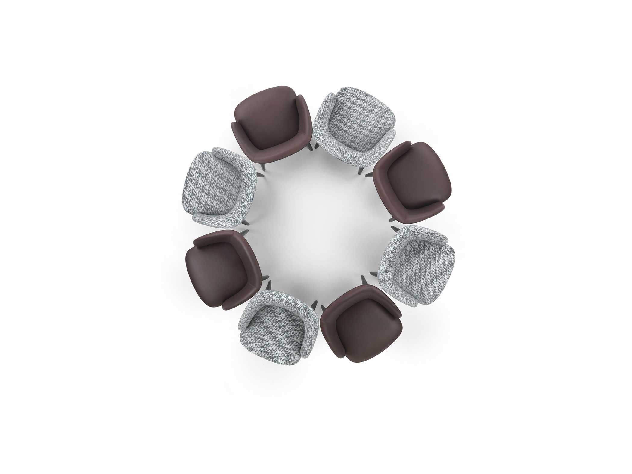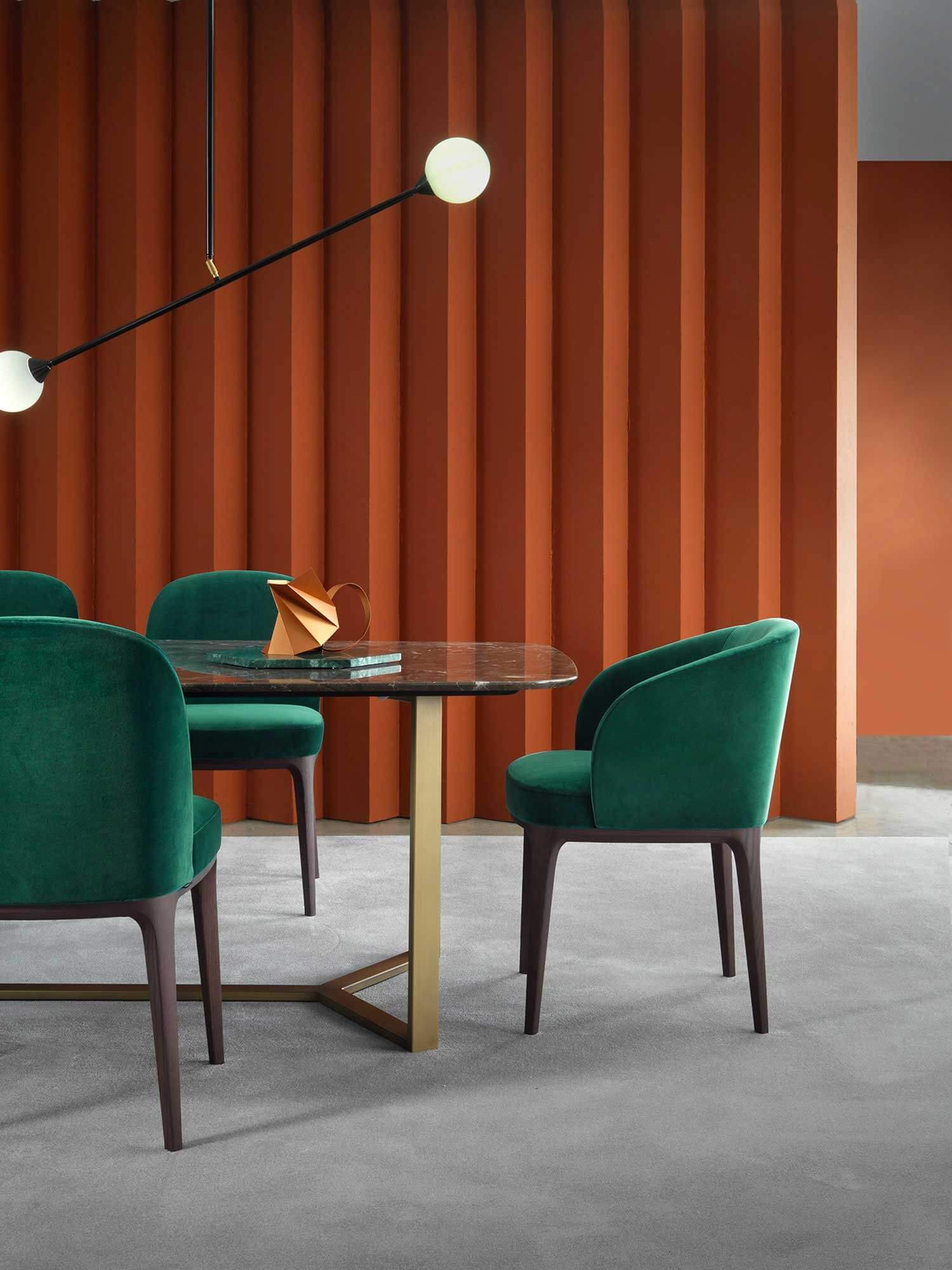 The base of the seats is made of wood; if desired, it can be upholstered with the same material chosen for the upholstered part. A further customisation option is the two-tone/bimaterial option that allows you to combine two different materials, e.g. fabric for the inner part and leather for the outer part of the backrest.