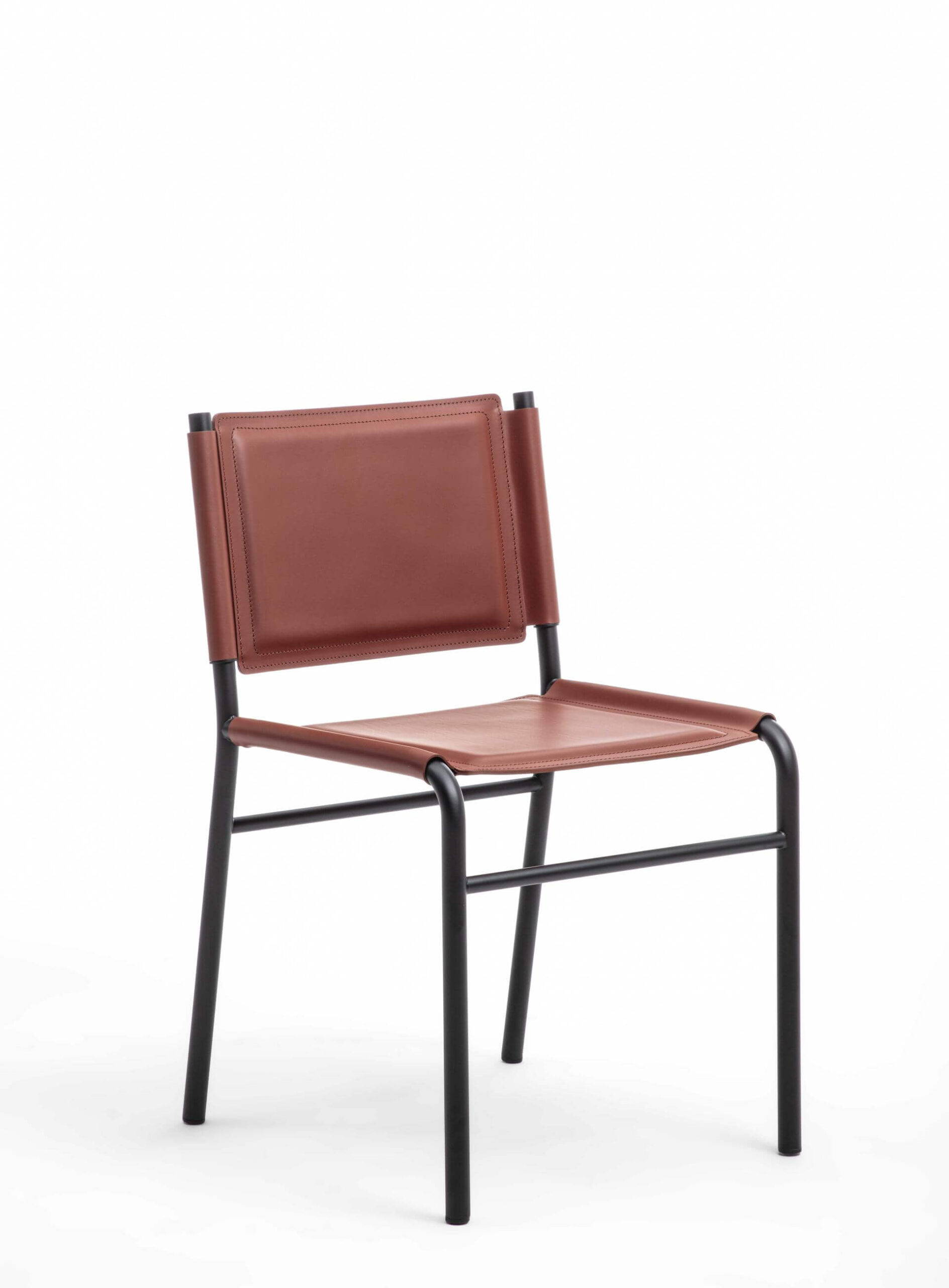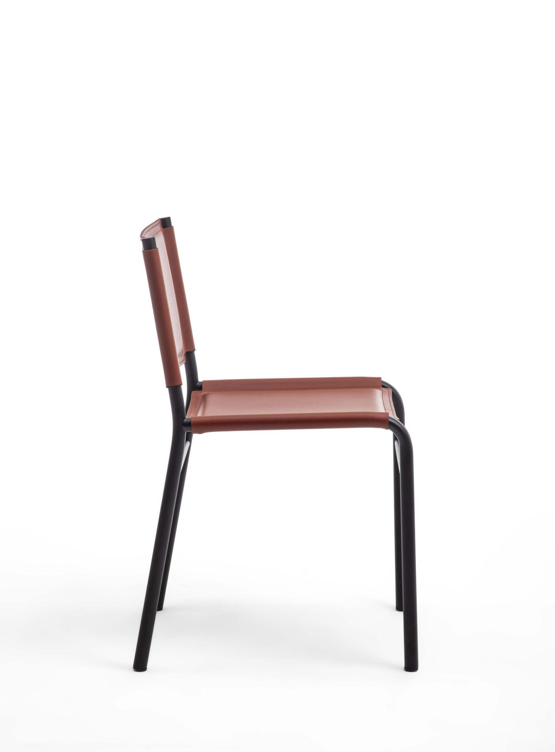Chair with tubular steel frame, painted in the different finishes available. Seat and backrest padded and covered in leather CPF or CTT.