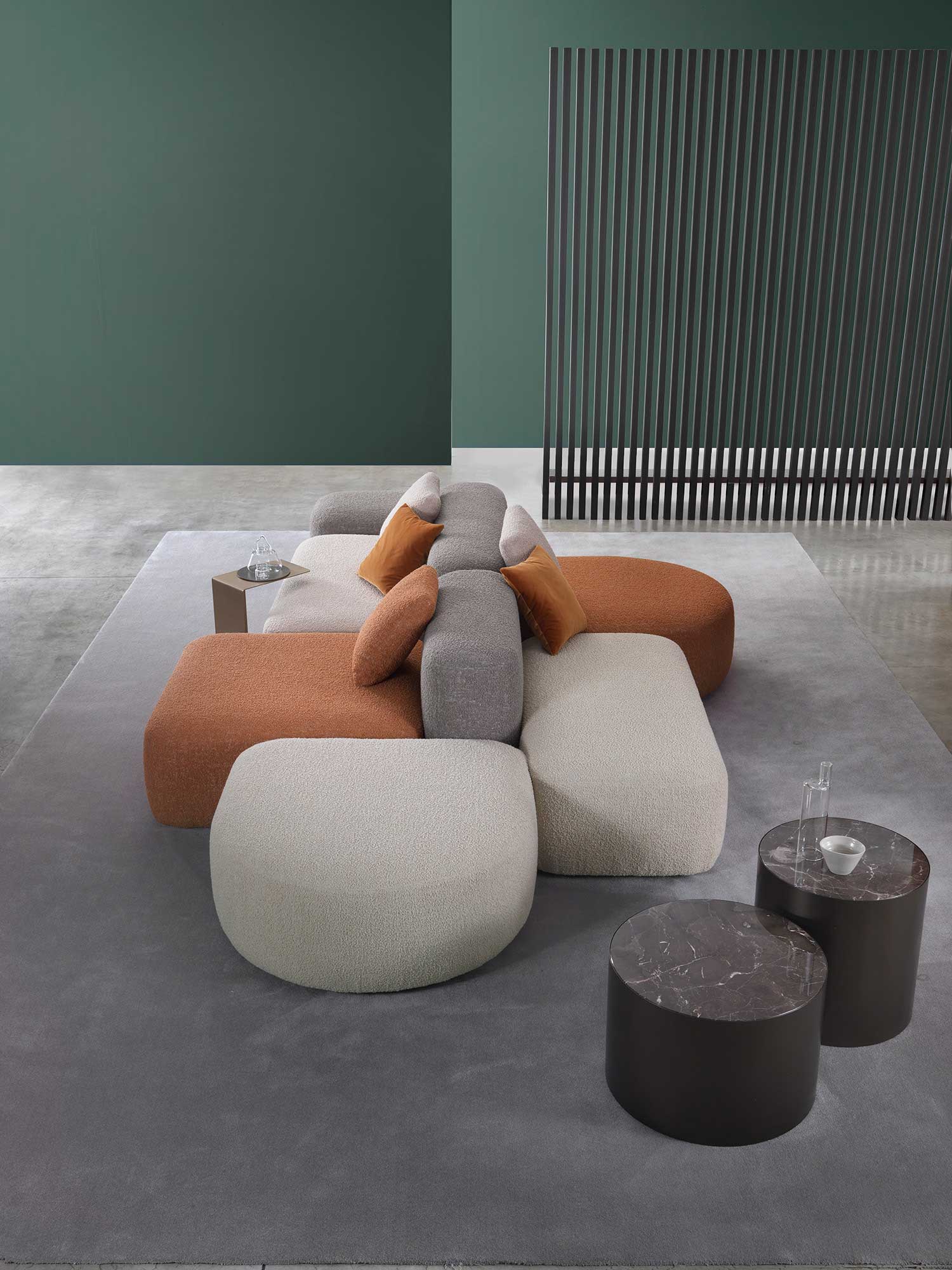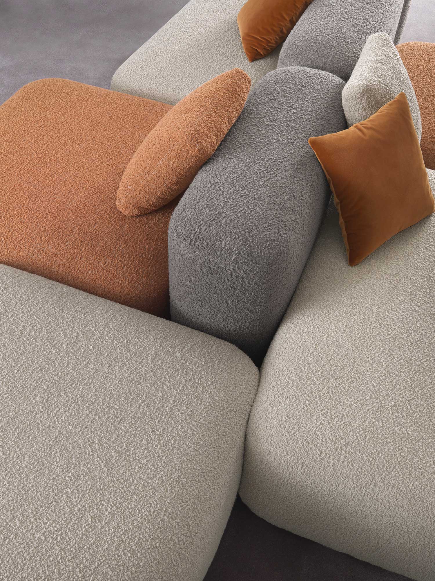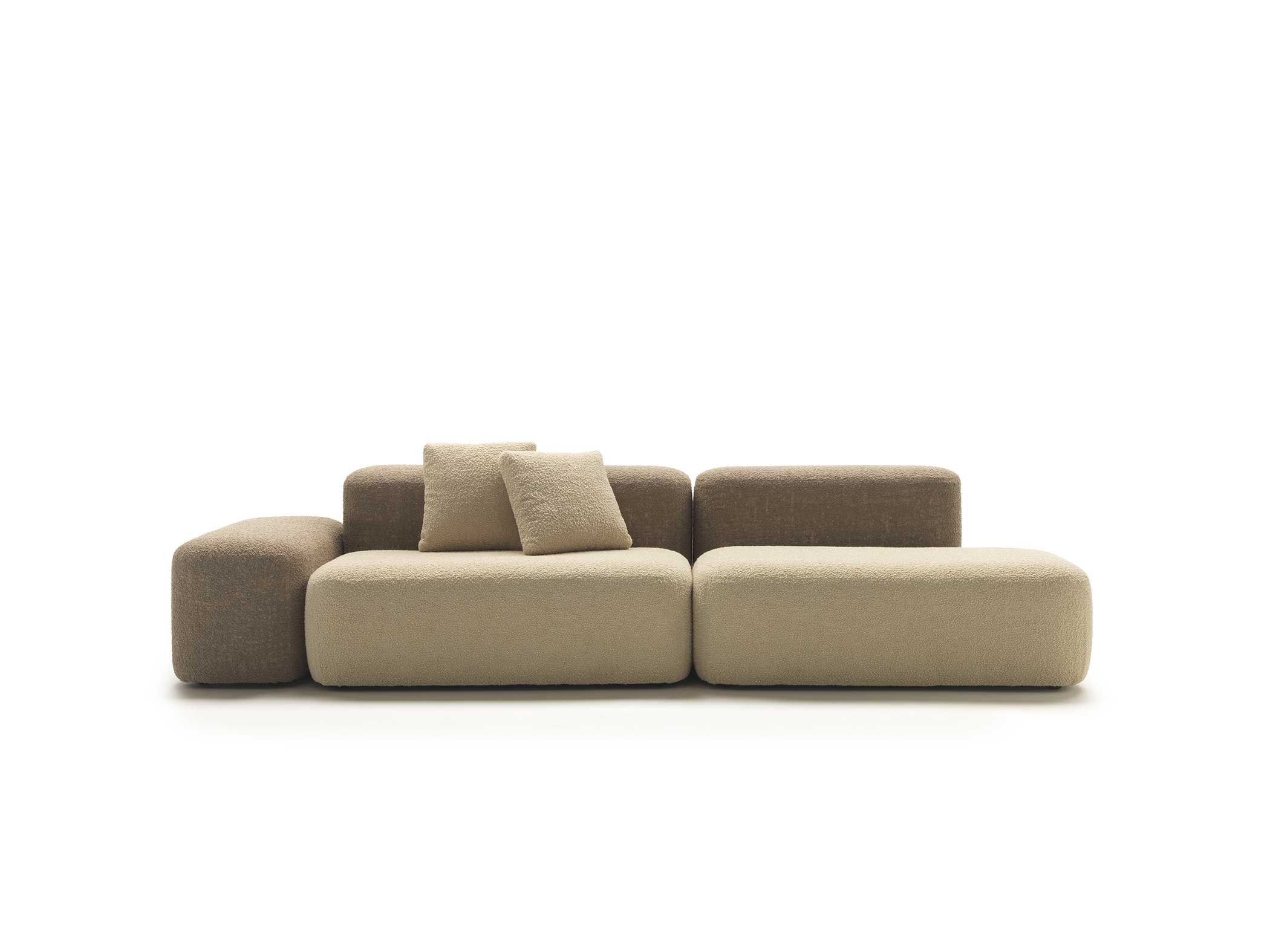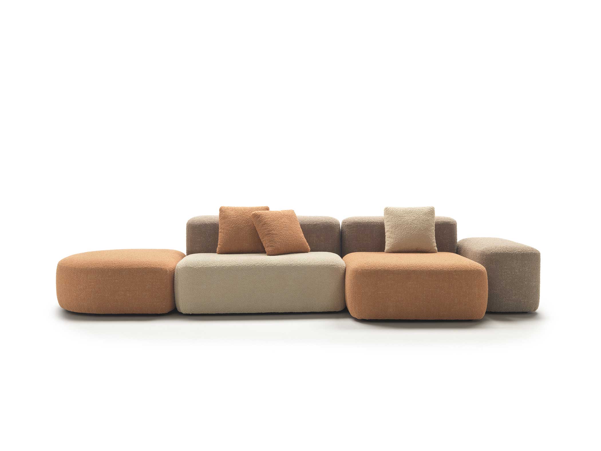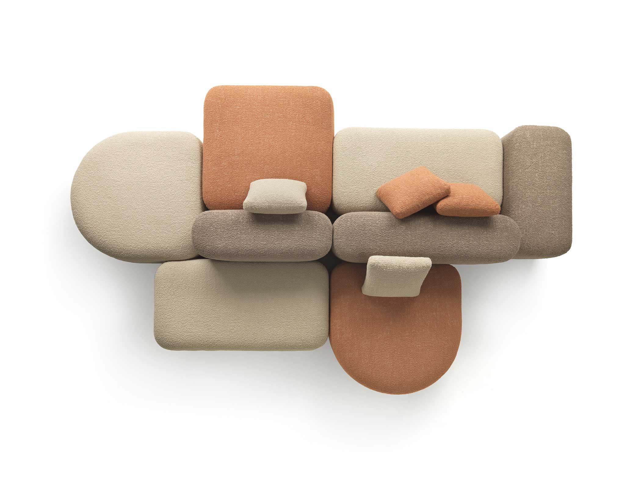 Sahara’s design is characterised by soft, welcoming lines that invite comfort and relaxation. The use of different coloured fabrics and textures adds a playful touch to the product, creating a lively and dynamic atmosphere. The variety of colour and fabric options allows the appearance of Sahara to be further customised to suit different environments and furnishing styles.