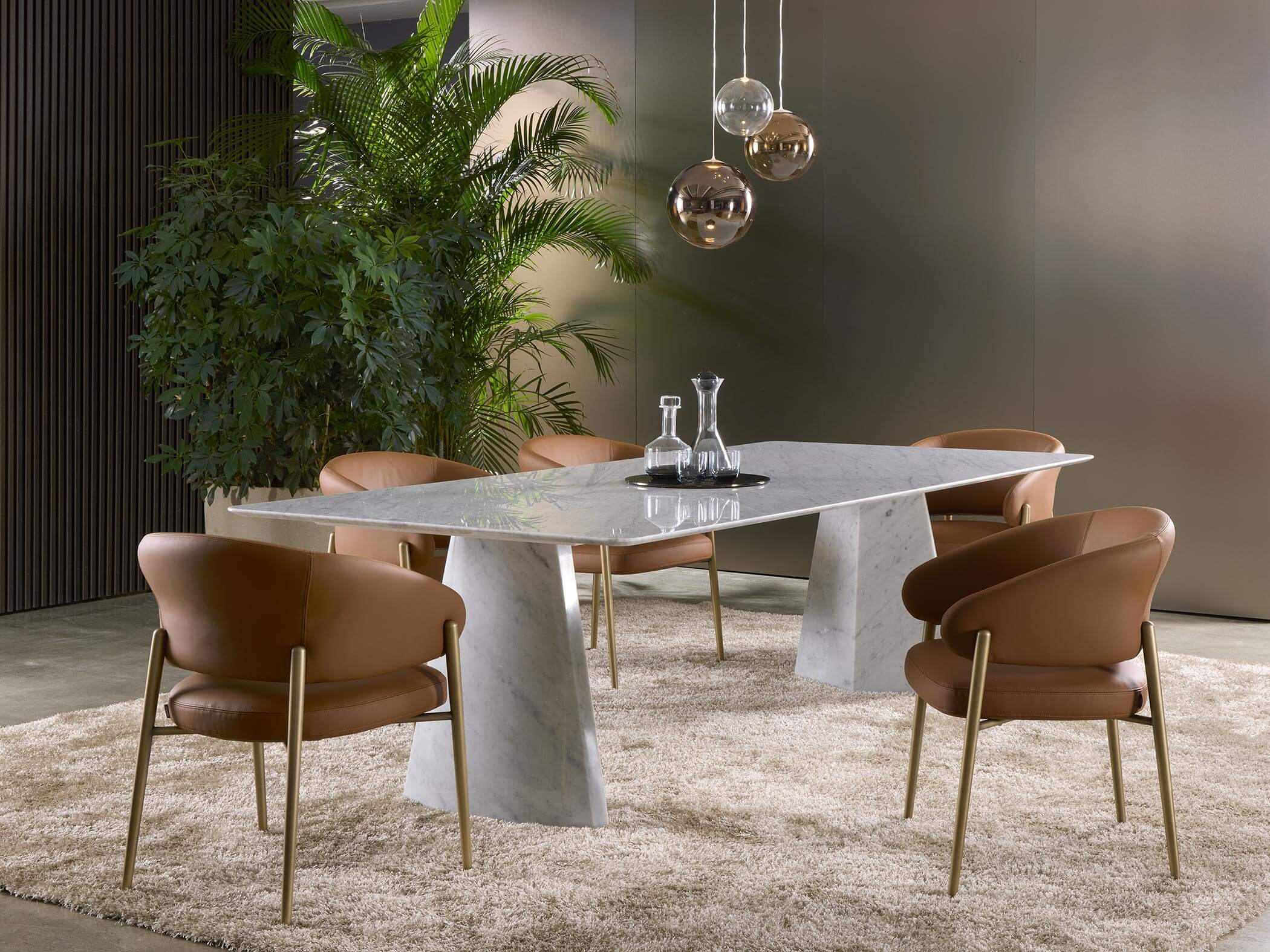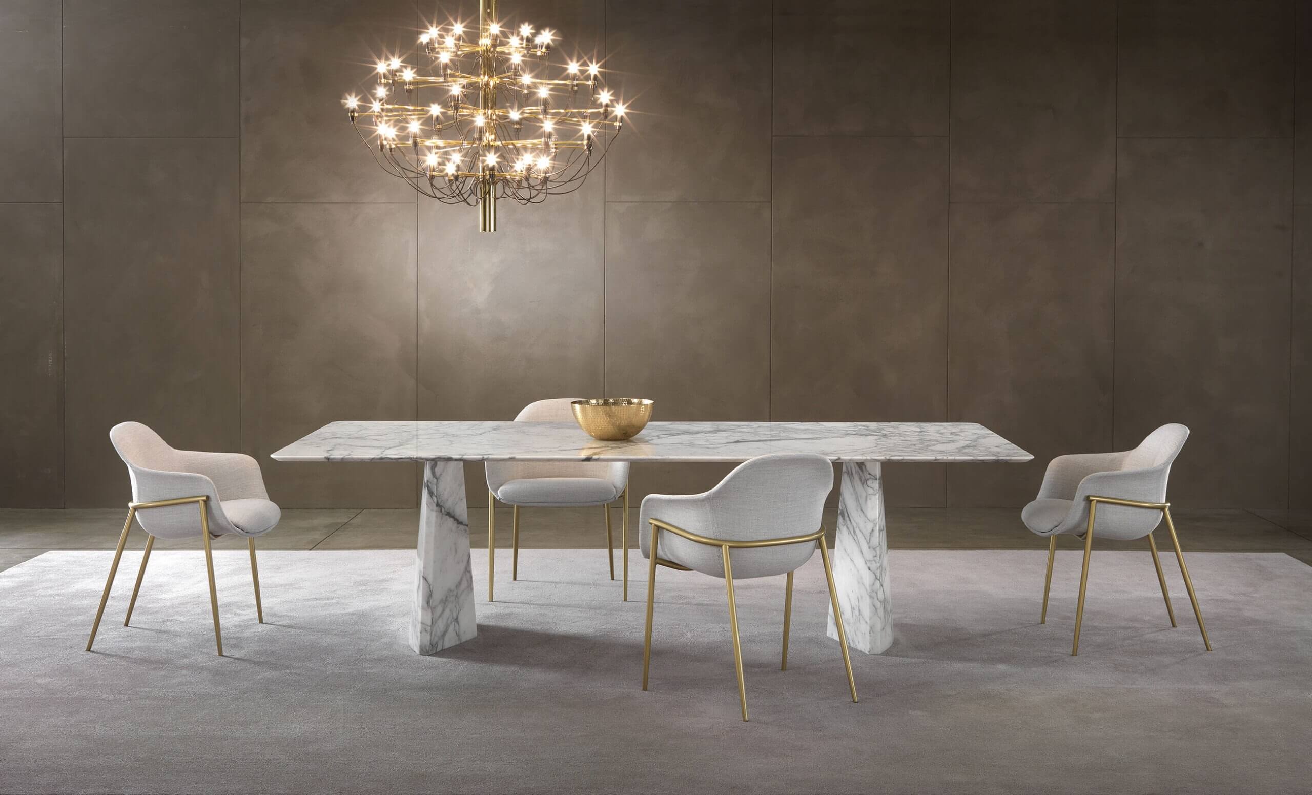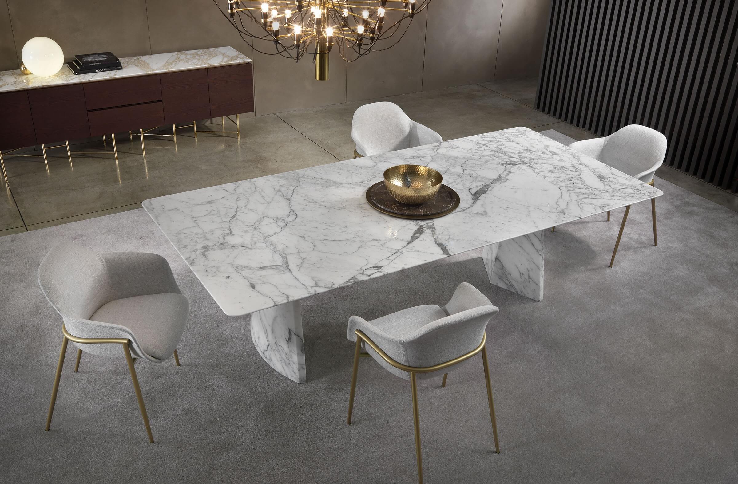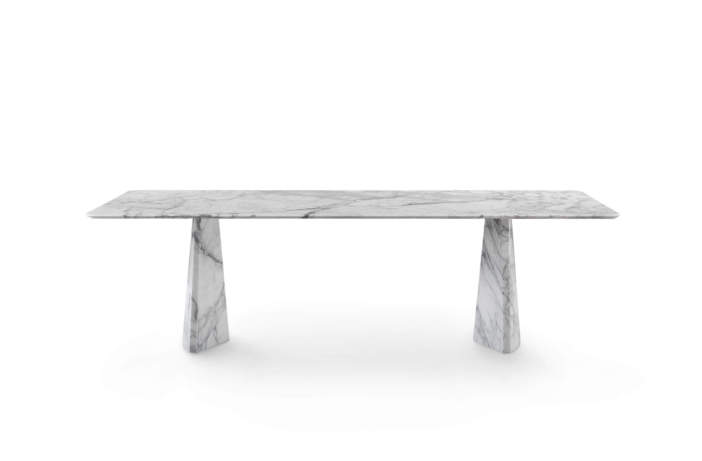 The Hebo table is much more than a piece of furniture: it is a true work of art that enhances the majesty of marble through a sculptural and elegant design. Its solid and material bases lighten towards the top, creating a suggestive floating effect for the top, in a perfect balance between strength and lightness.