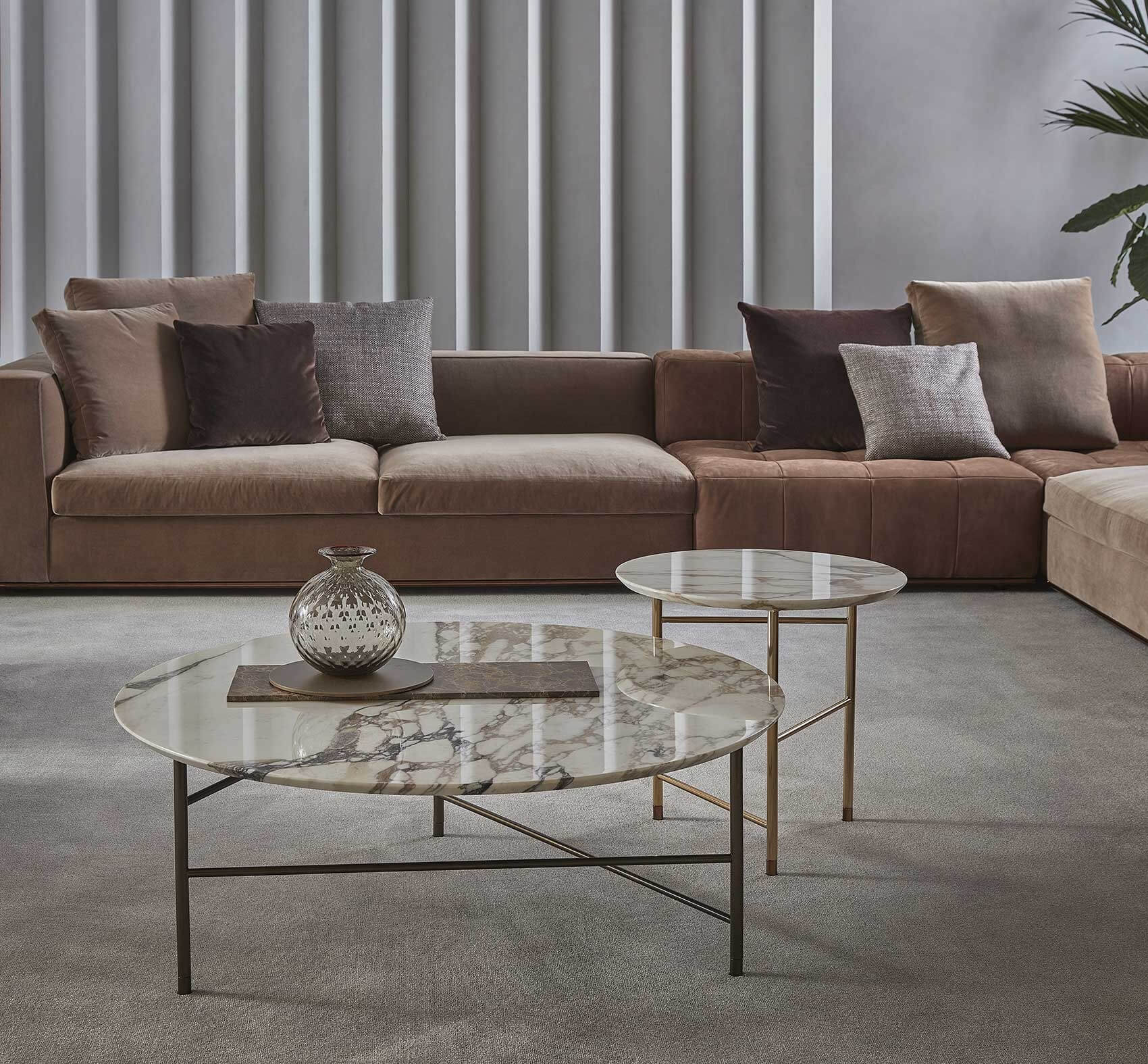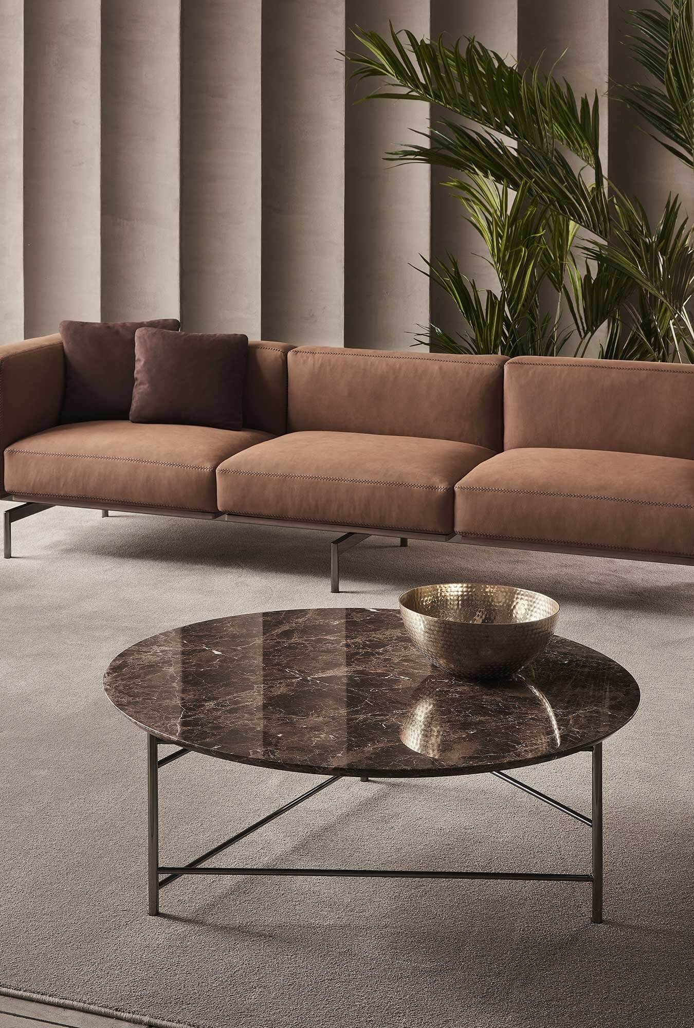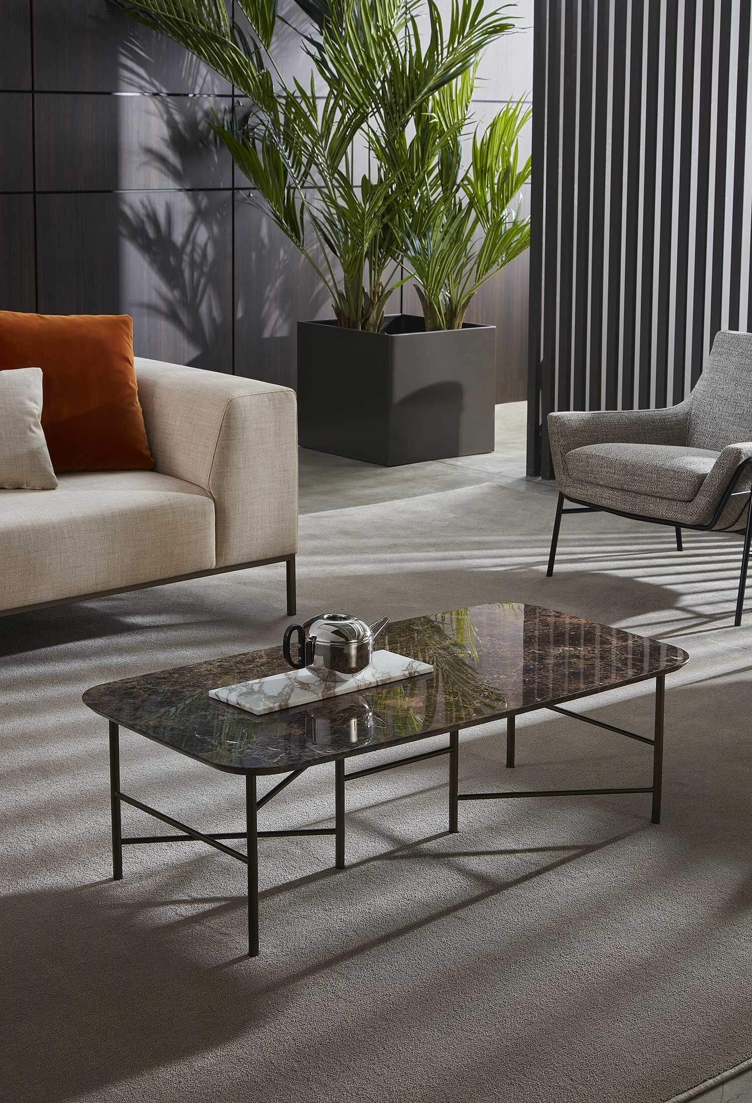 Kyoto is a family of coffee and dining tables that combines essentiality with solidity in its design. The gentle lines and striking details of the metal crosspieces give the table a distinctive character.