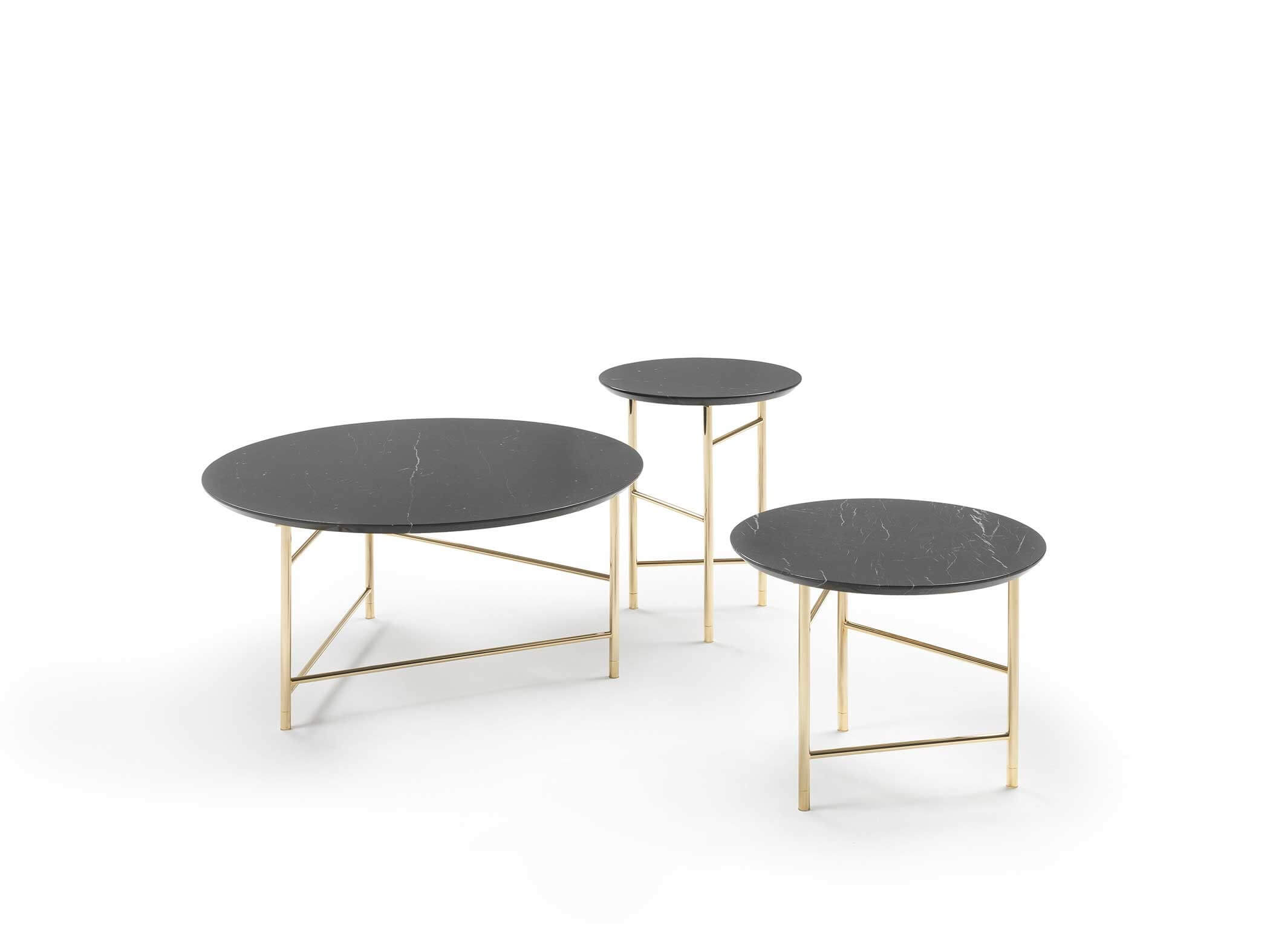 The top is available in marble and wood, offering a wide choice of finishes to suit the desired taste and furnishing style.