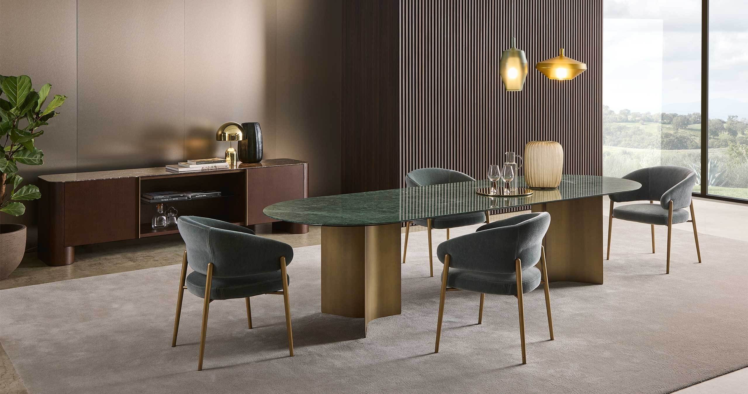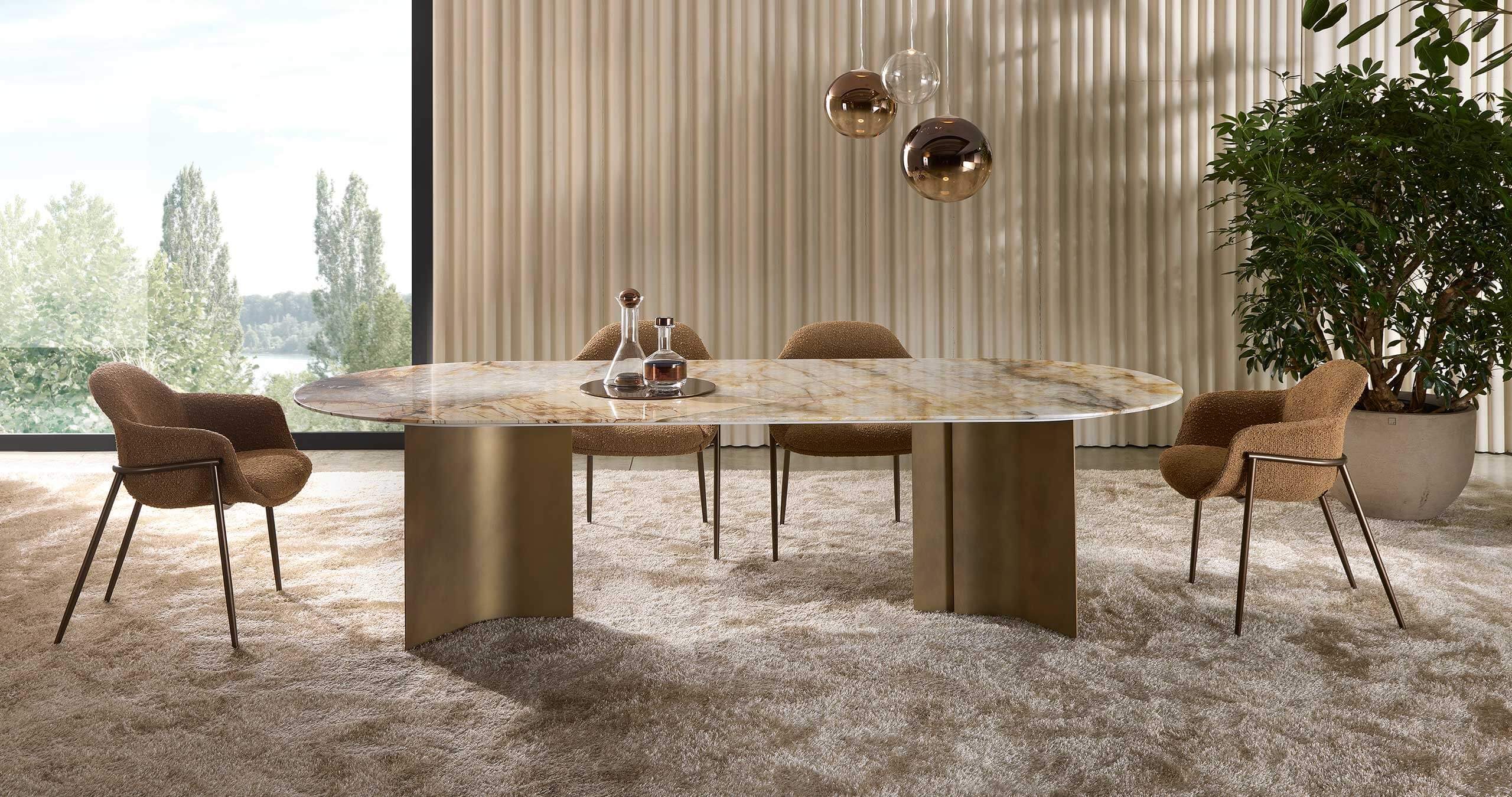 The Wave collection of dining and coffee tables is characterised by its sculptural design and exceptional versatility, capable of bringing lightness and harmony to any environment. The distinctive feature of the collection is the design of the finely curved legs, which create a refined play of volumes and contrast with the essentiality of the top, giving the tables a striking visual balance.